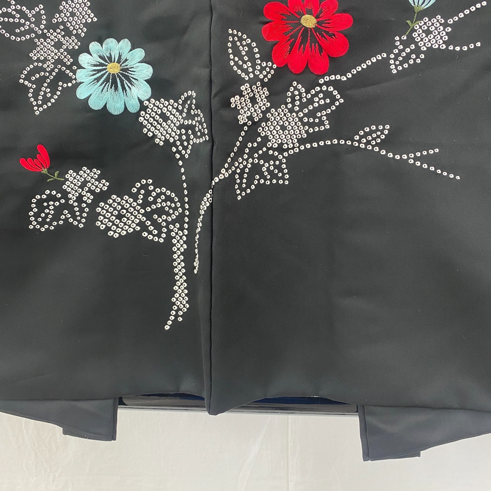 Japanese Vintage Kimono Haori Jacket Polyester Black Traditional Embroidery 30in
