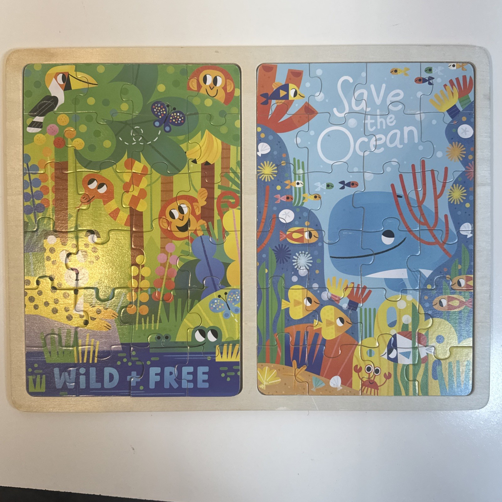 3 Wooden Children s Puzzles: Zoo Animals Ocean Life Alphabet Frame 36-48 Pcs
