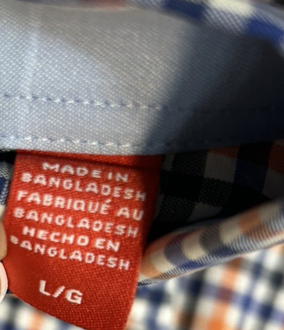 как выглядит IZOD Mens Orange Blue Plaid Long Sleeve Shirt SZ Large Button Up фото