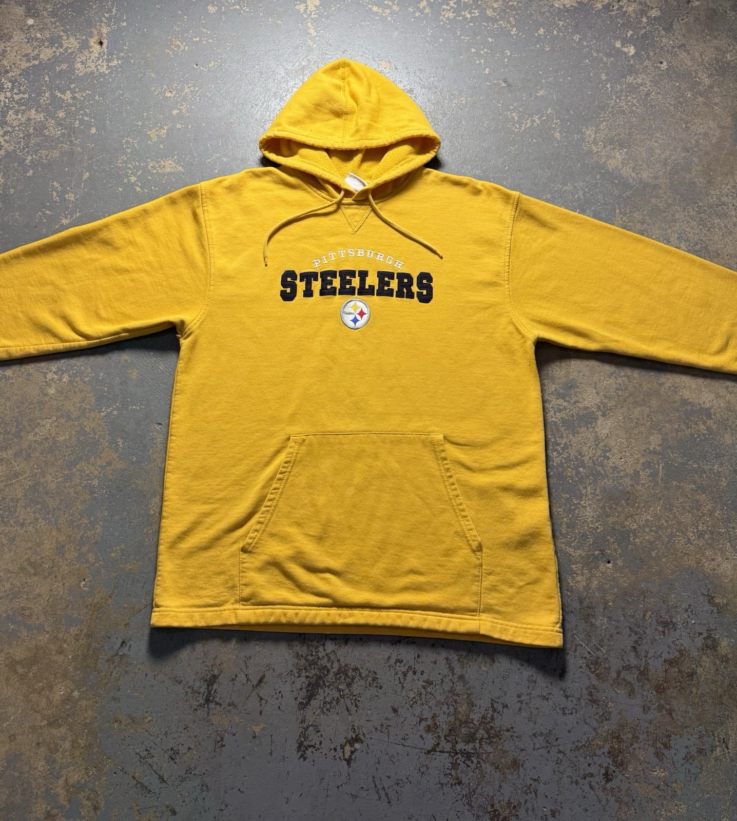 • Vintage Pittsburgh Steelers NFL Y2K Yellow Distressed Hoodie Sweatshirt-Size L