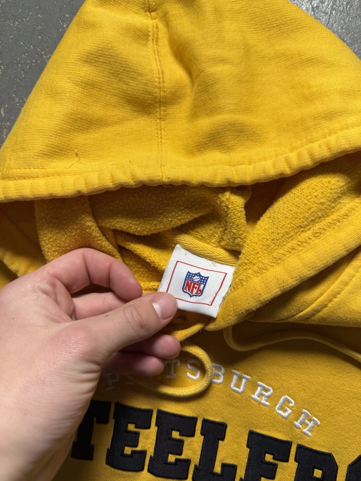 как выглядит Vintage Pittsburgh Steelers NFL Y2K Yellow Distressed Hoodie Sweatshirt-Size L фото