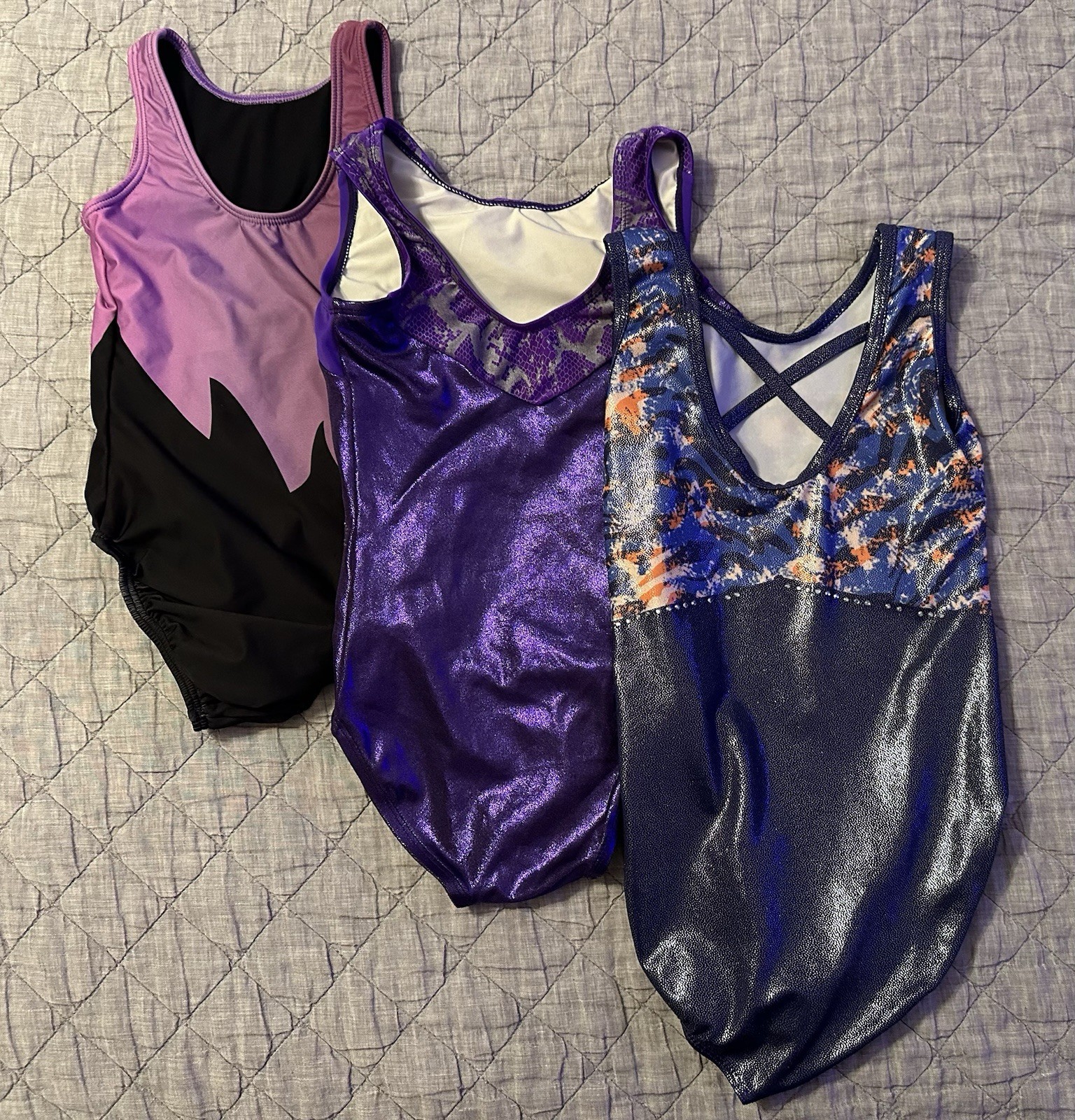 Girls Gymnastics Leotards Lot Size 8 YM Sparkle Metallic Purple Blue Annie Zone