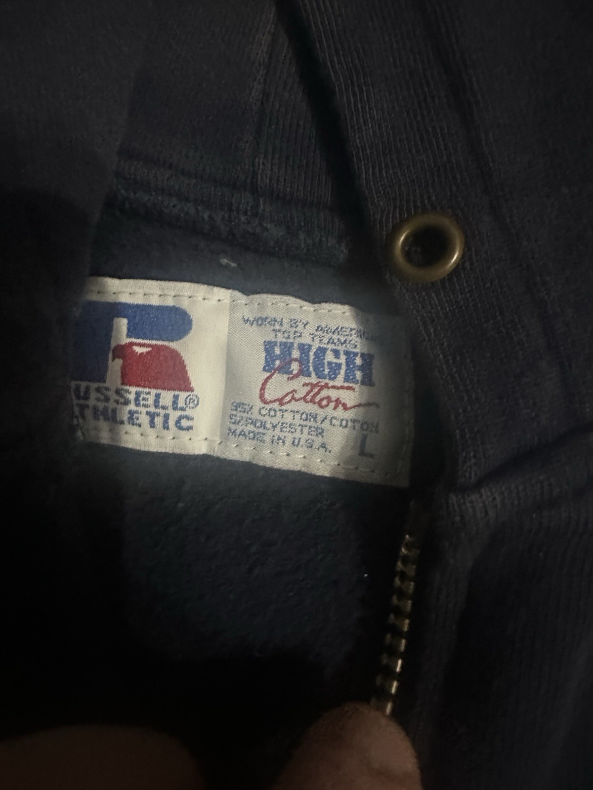 как выглядит Vintage Russell Athletic Large Full Zip Hoodie Sweatshirt Mens Navy Made in USA фото