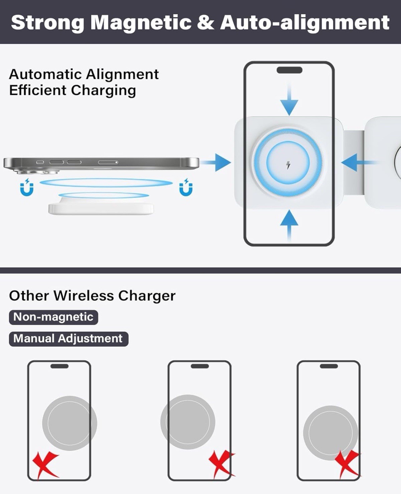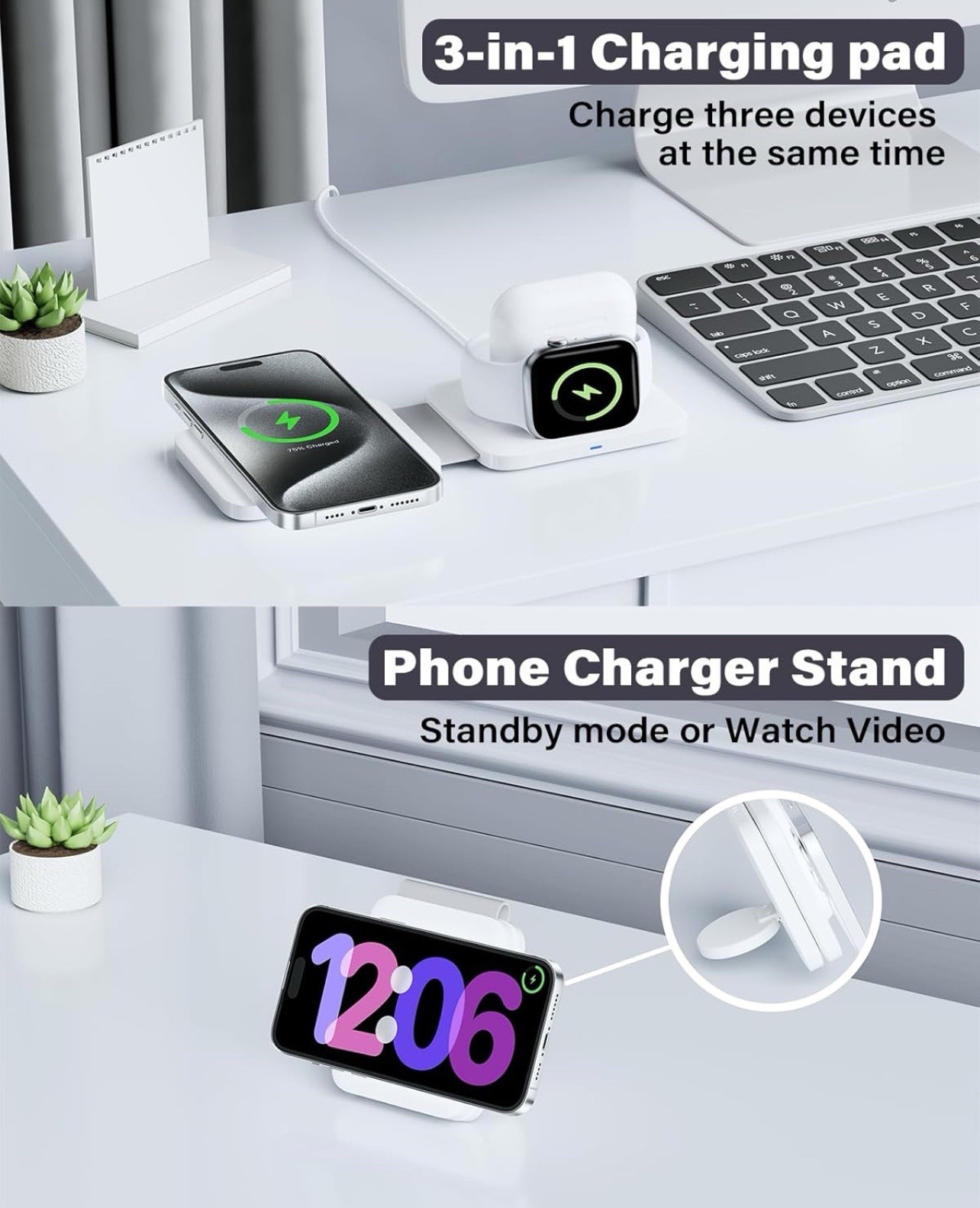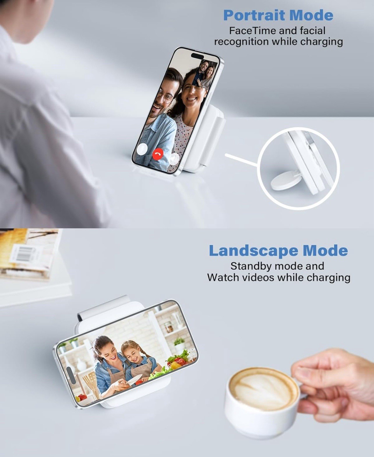 3 in 1 Wireless Charging Station for Apple Devices, Foldable Travel For iPhone