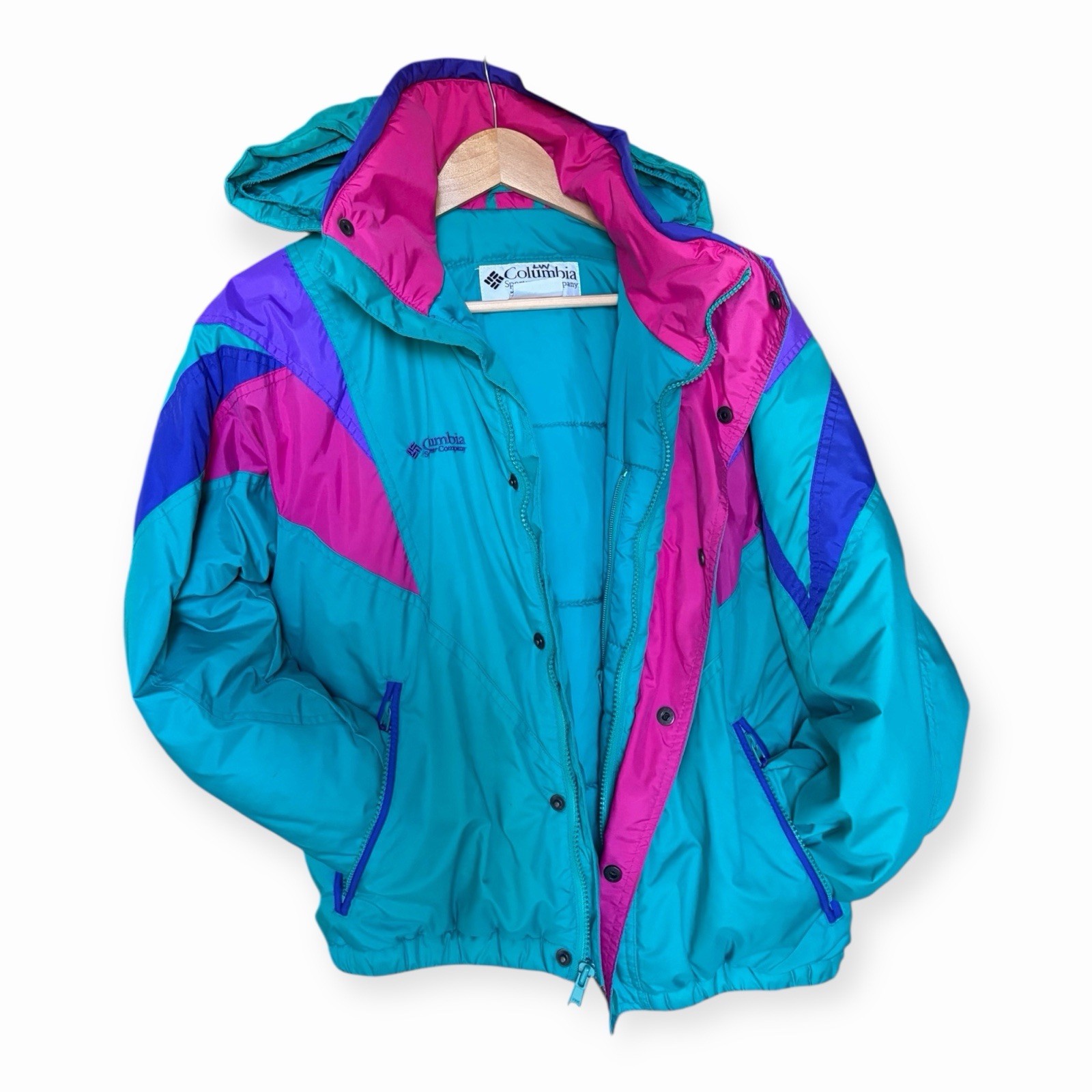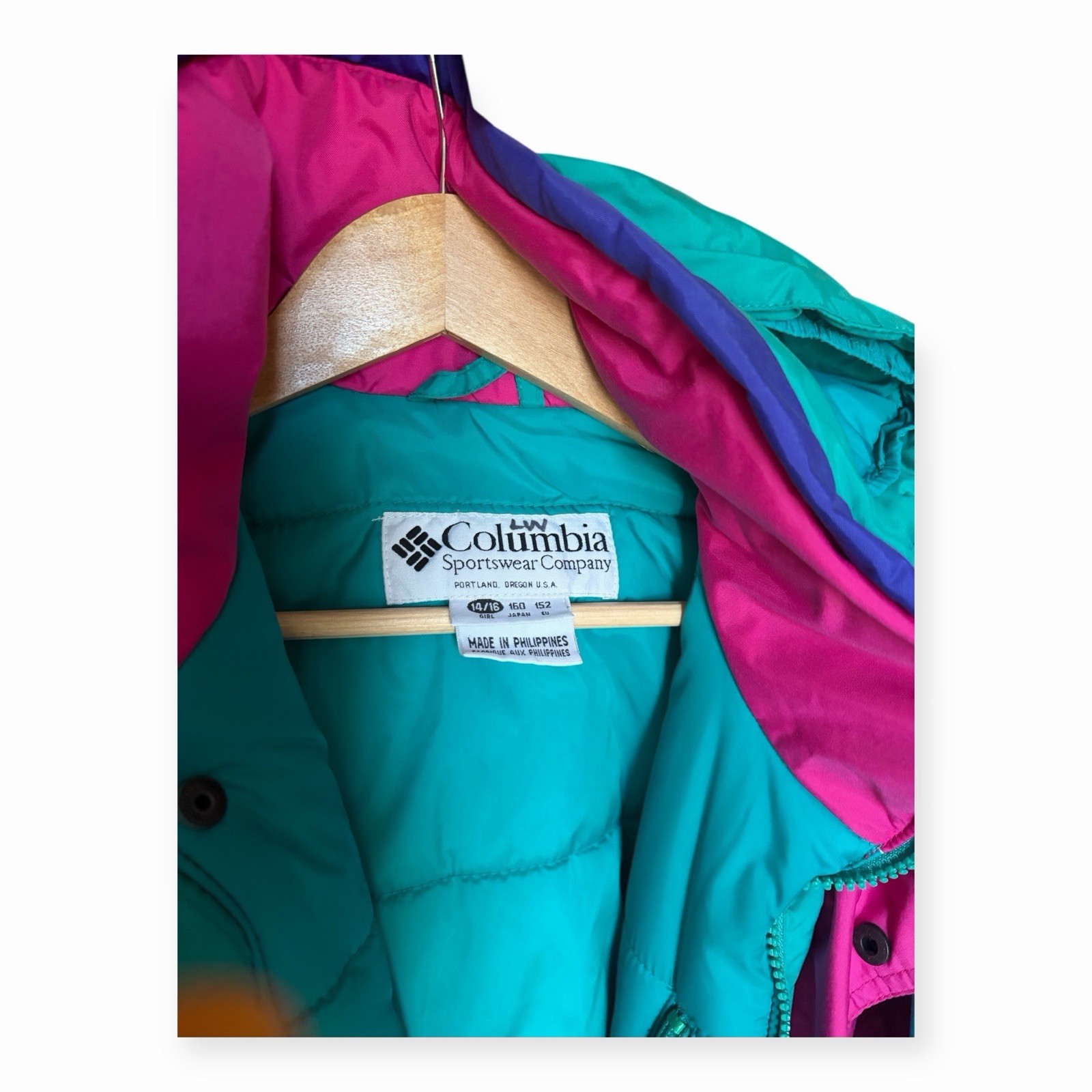 Vintage Columbia Colorblock Puffer Jacket Teal Purple Pink Youth 14/16 XS/S