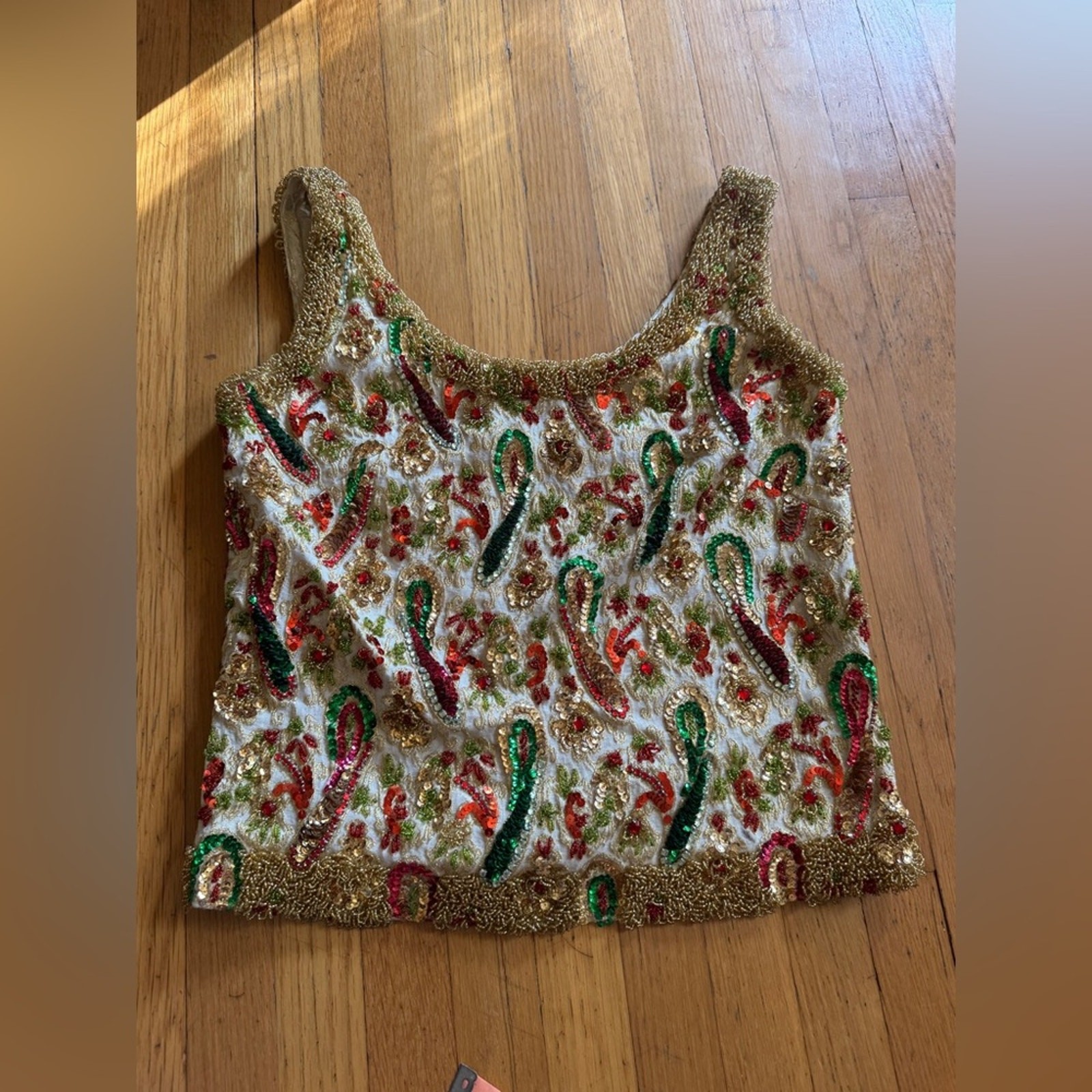 как выглядит 60s Vintage Sequin Party Top Sz M фото
