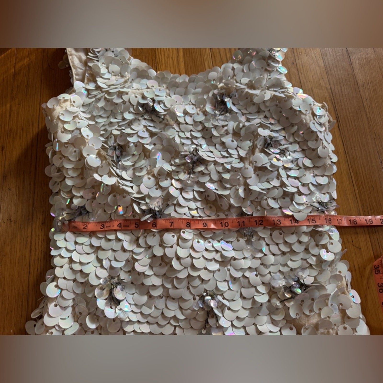 как выглядит 60s Vintage White Paillette Sequin Knit Blouse Sz Large фото