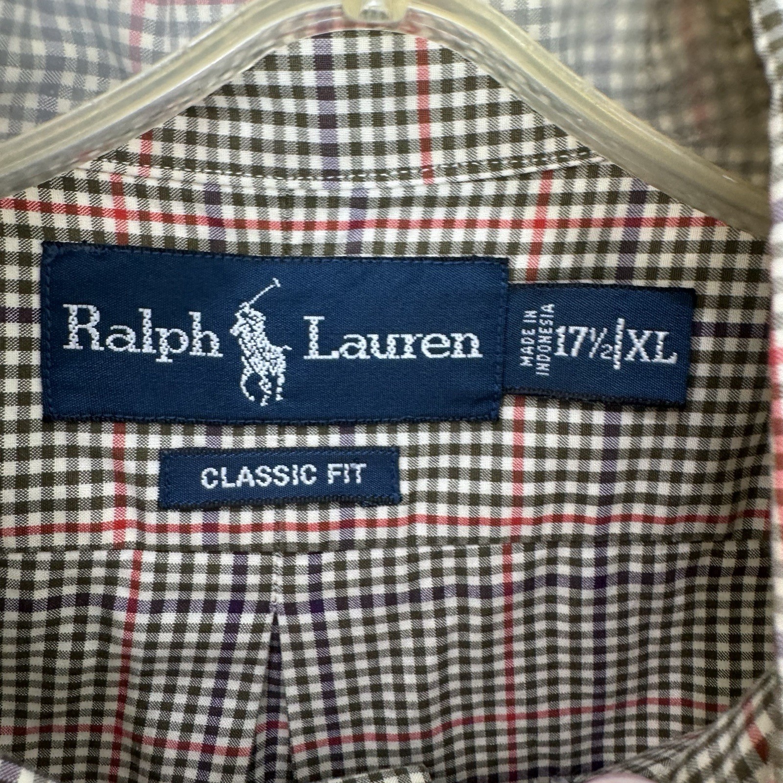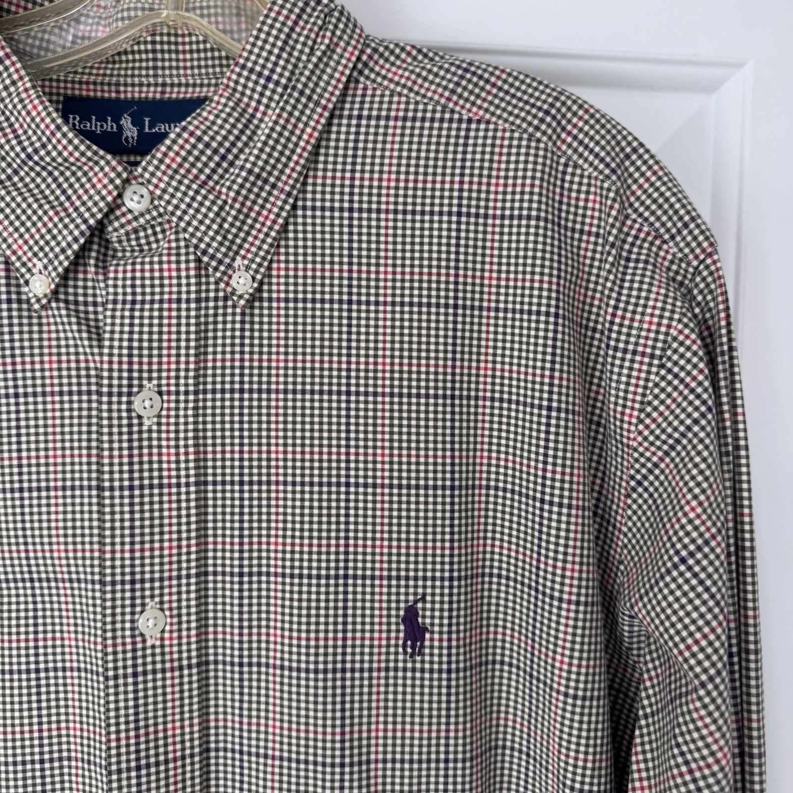 как выглядит Ralph Lauren Men s Blue Plaid Button Down Shirt Size XL 17.5 Custom Fit Cotton фото