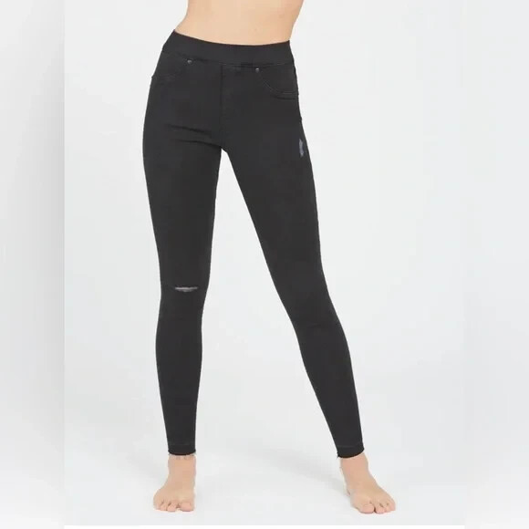 NEW SPANX Vintage Distressed Ankle Skinny Jeans Leggings Black Size S