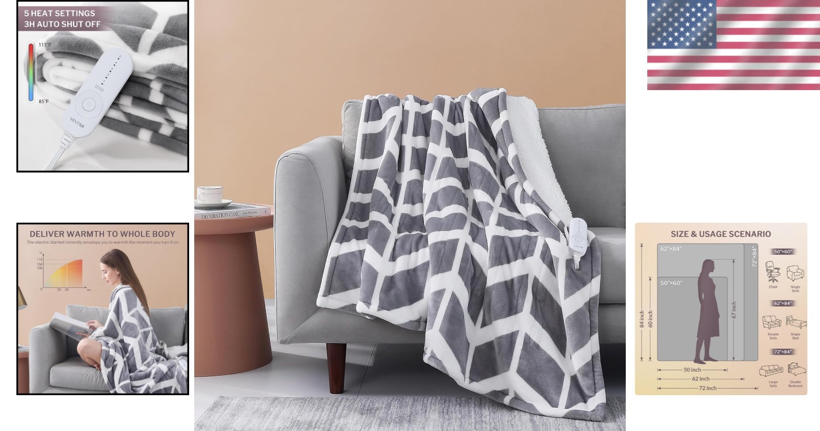как выглядит Elegant Grey Electric Heated Throw - 50" x 60", Soft Warmth for Winter Nights фото