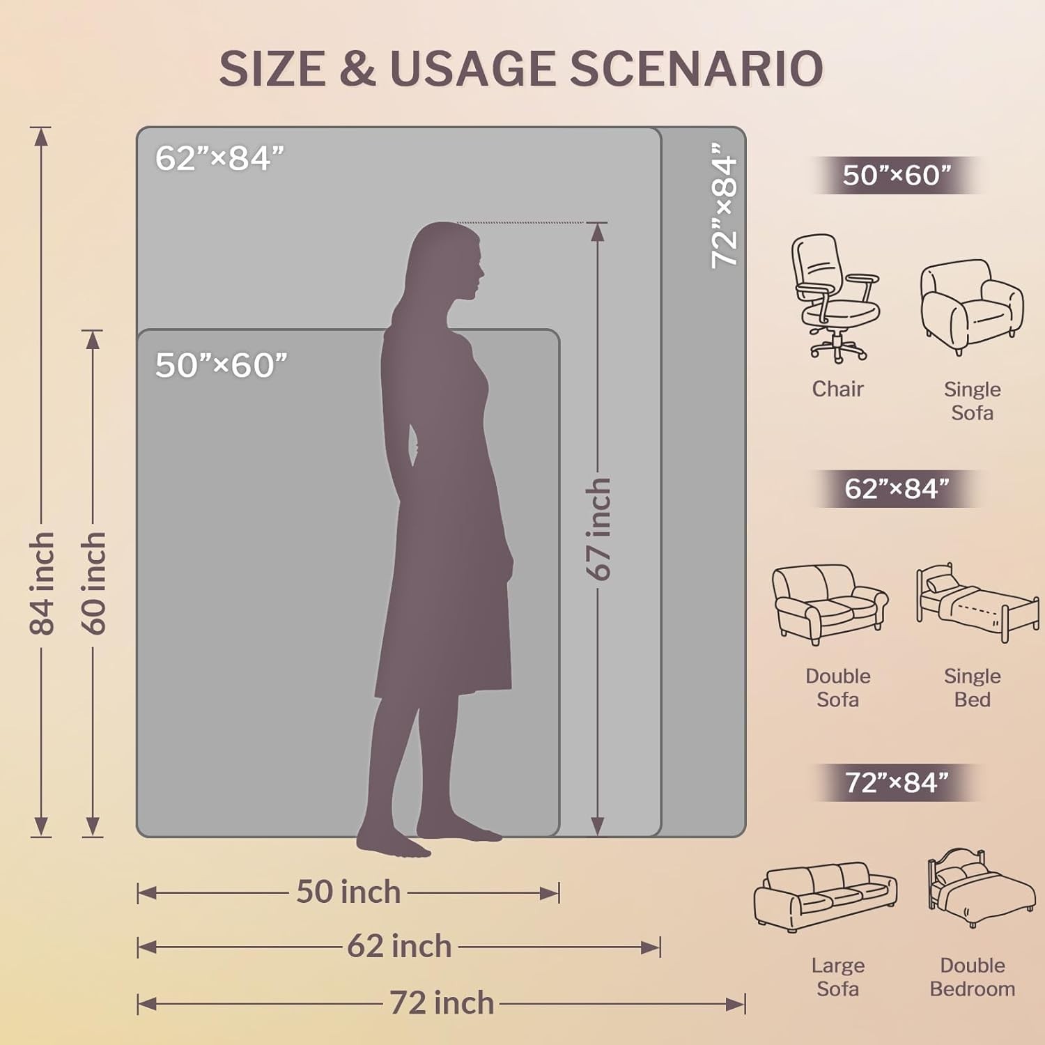 Elegant Grey Electric Heated Throw - 50 x 60, Soft Warmth for Winter Nights