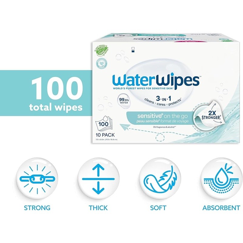 Fragrance Free Sensitive Skin Wipes Plant Based Disposable Eczema Care 100 Count