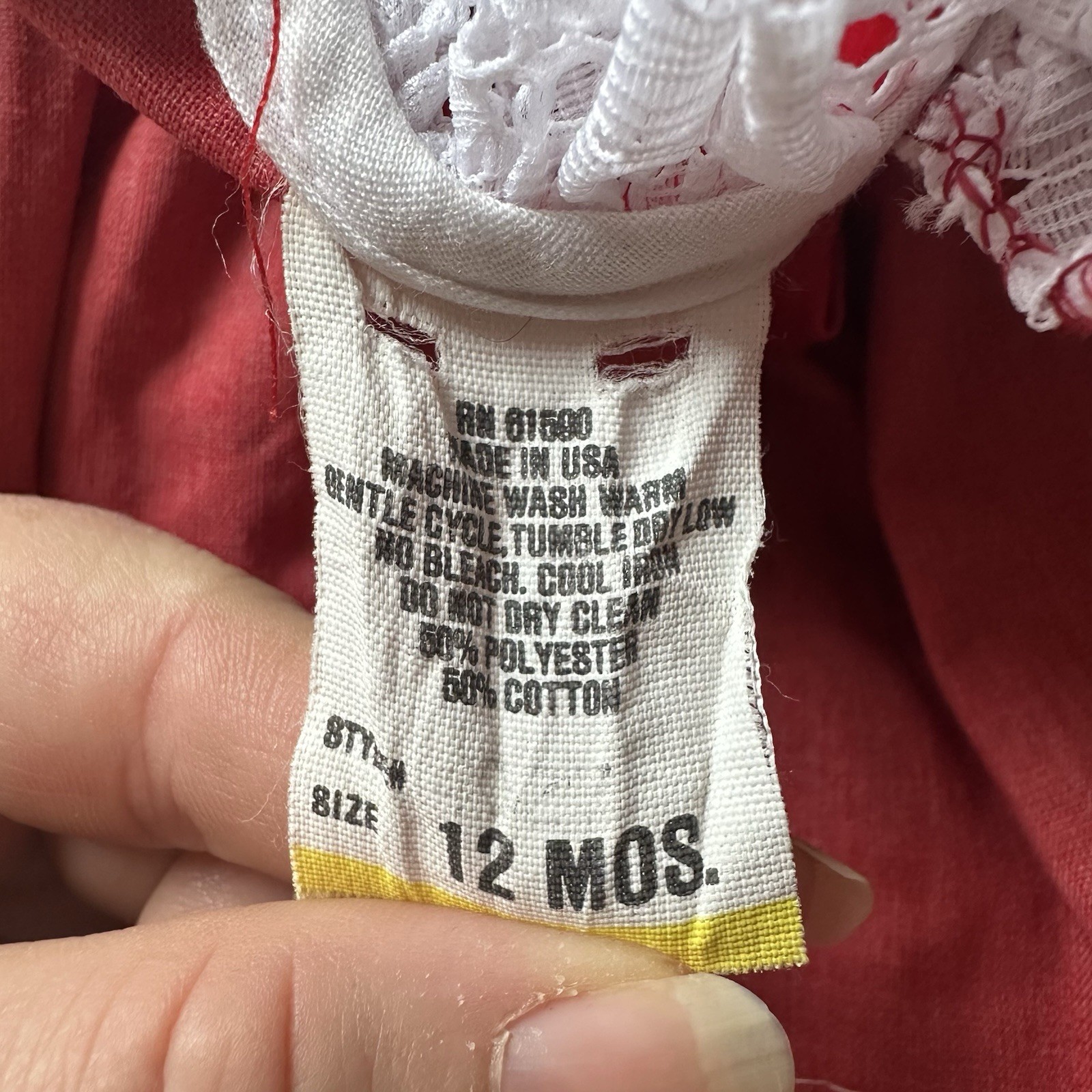 как выглядит Vintage Baby Girl Red Velvet And White Lace Christmas Dress Sz 12 Months фото