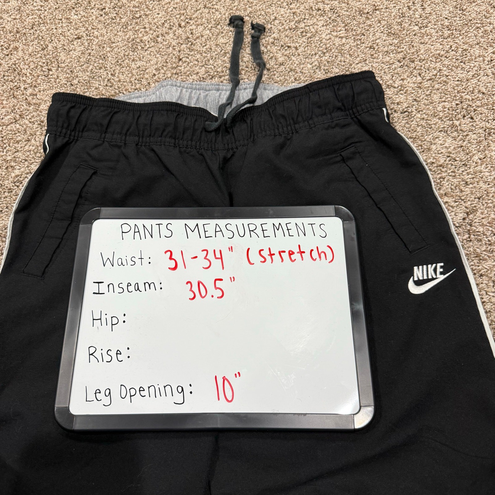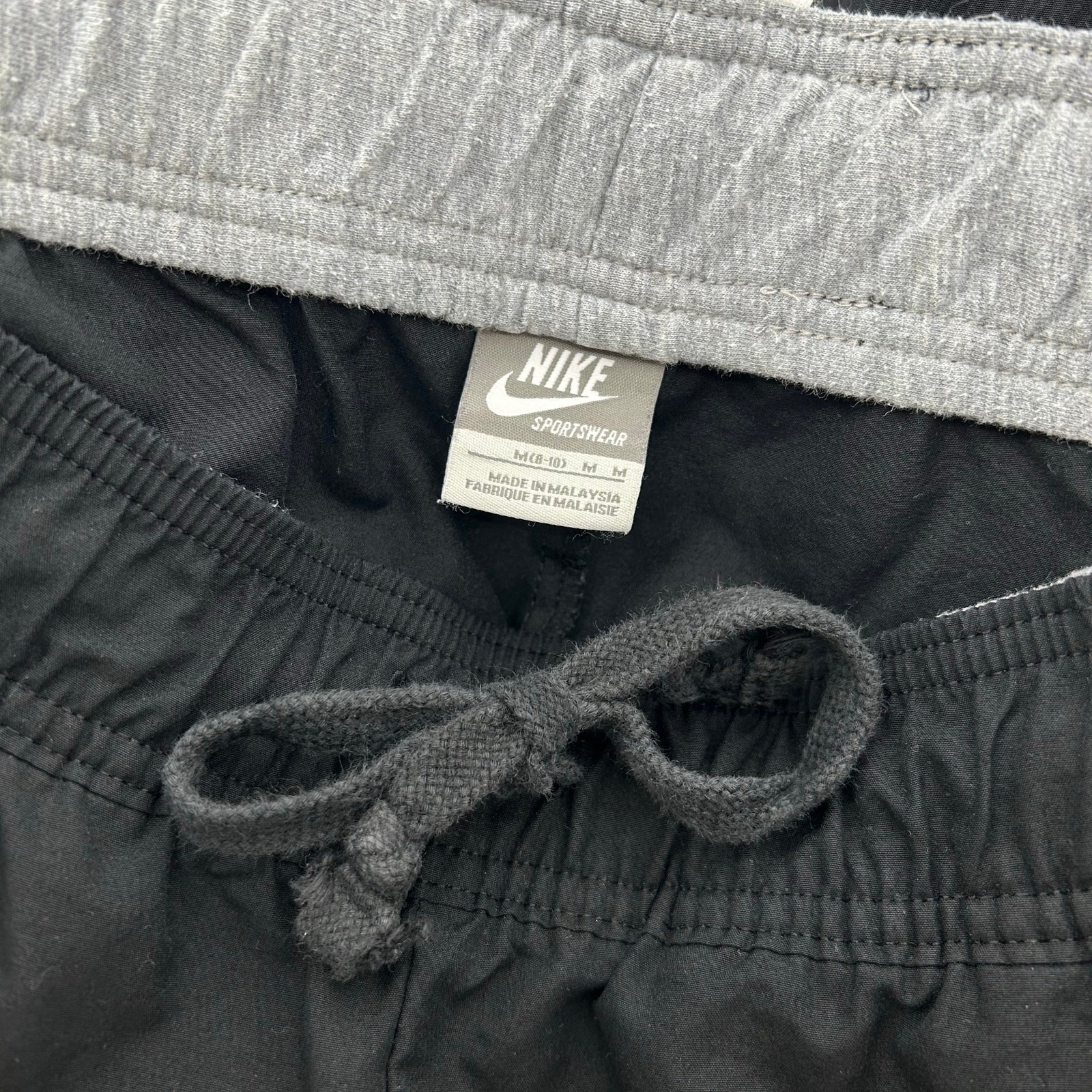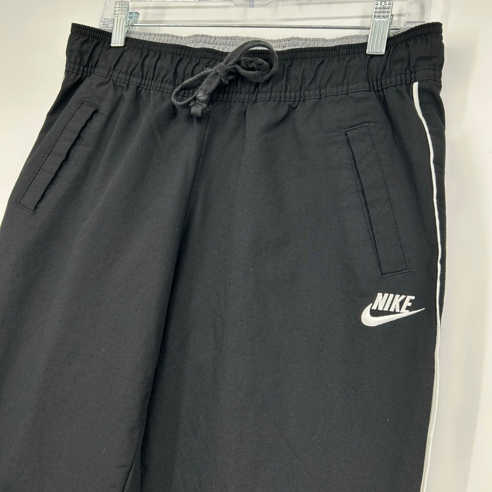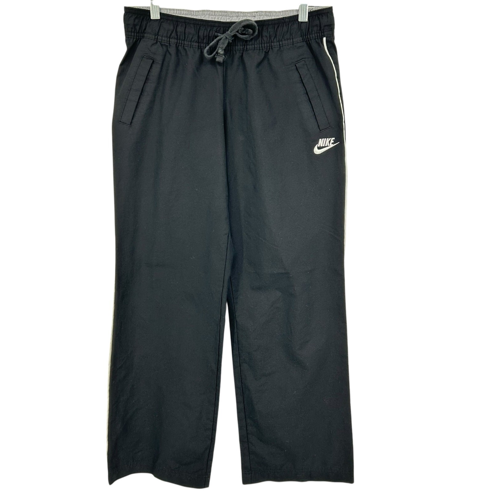 VTG y2k Womens Black White Nike Baggy Wide Leg Side Stripe Track Sweatpants Sz M