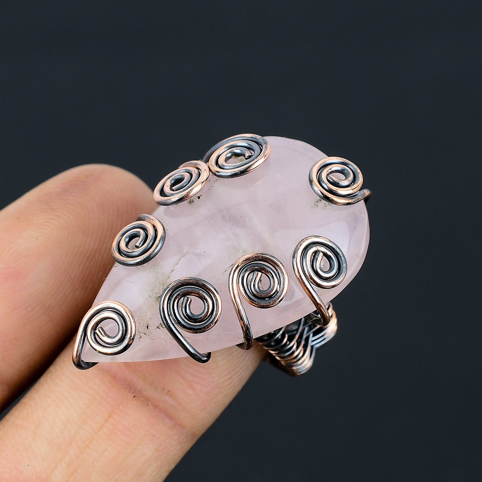 как выглядит Rose Quartz Gemstone Handmade Copper Wire Wrap Jewelry Ring Size 9.5 M441 фото