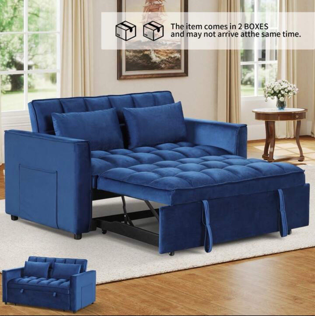 как выглядит 54 Convertible Futon Sofa Bed Loveseat Sleeper Sofa Couch w/Pull-Out Sofa Bed фото
