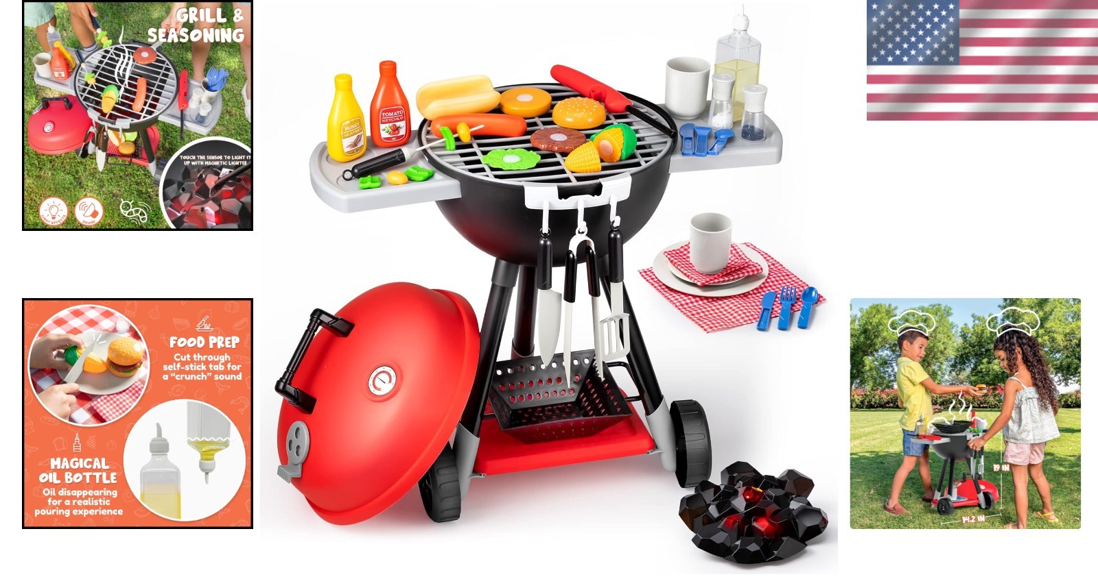 Kids BBQ Grill Playset - 34 PCS Non-Toxic Kitchen Toy Set for Ages 2-4
