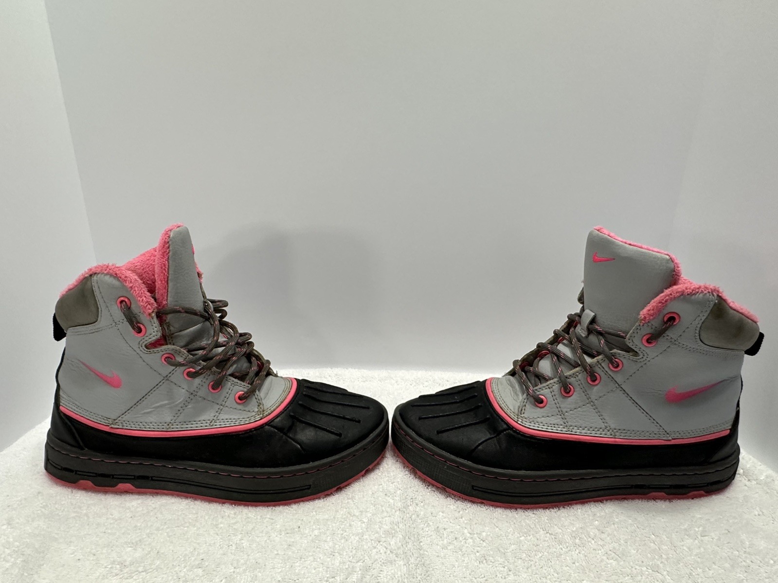 Nike ACG Woodside Duck Boots Kids 6.5Y Pink Gray Leather 486891-060 Waterproof