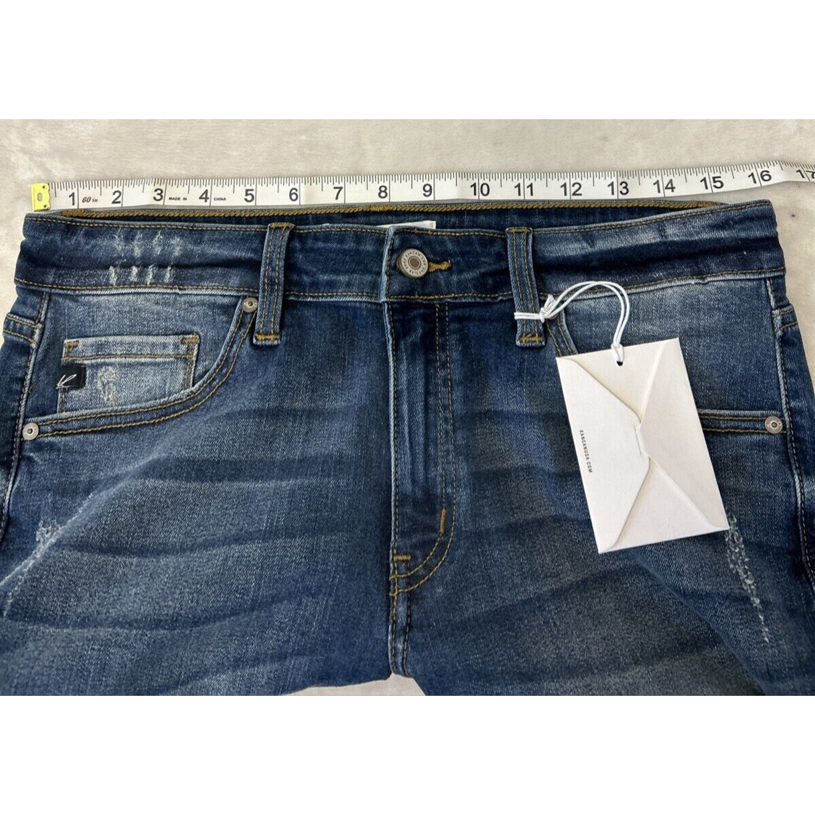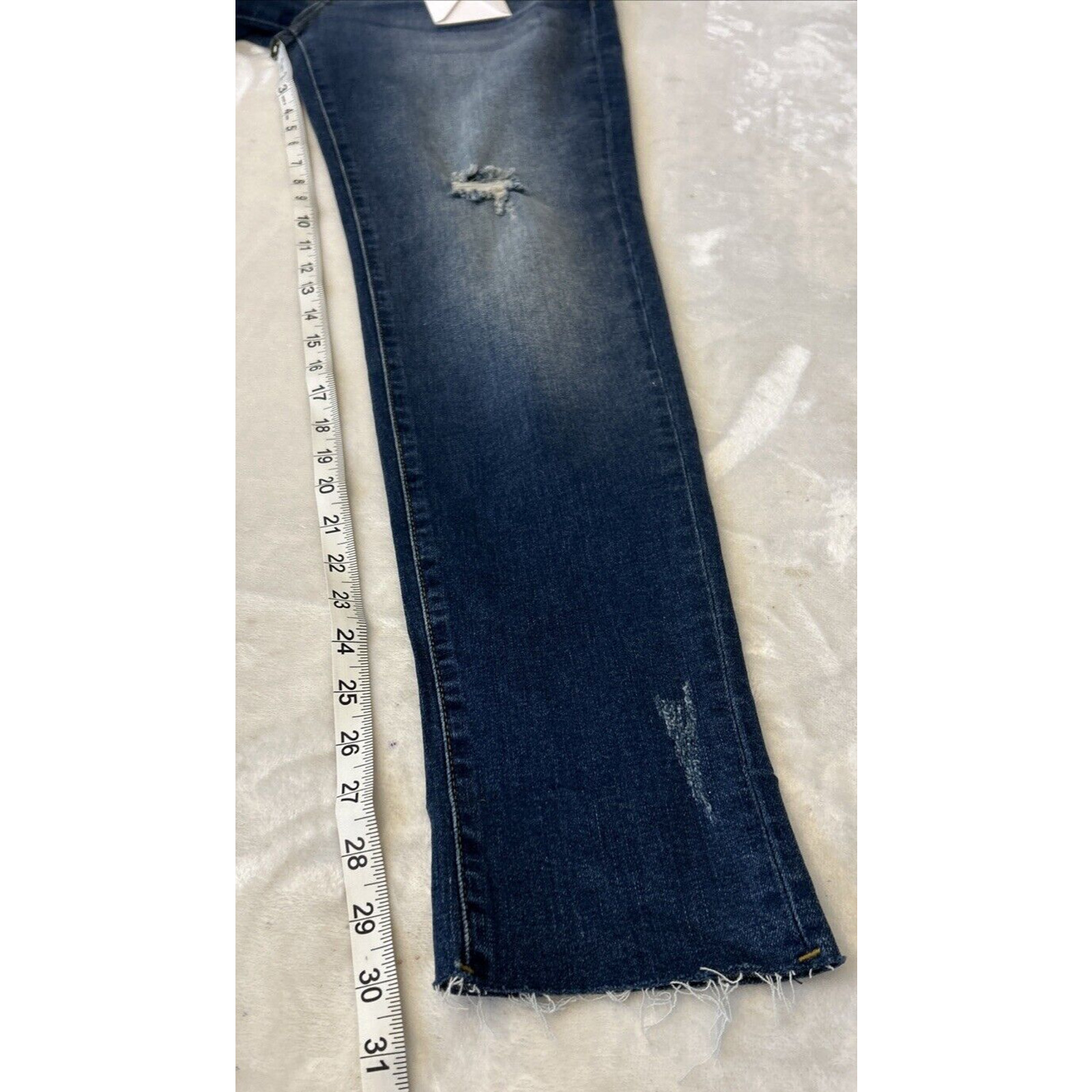 как выглядит KanCan Estilo Jeans Womens Size 13/30 Dark Wash Distressed Raw Hem Zip Blue NWT фото