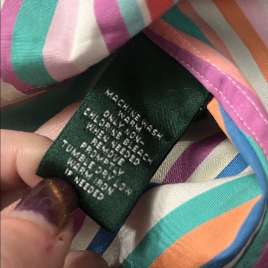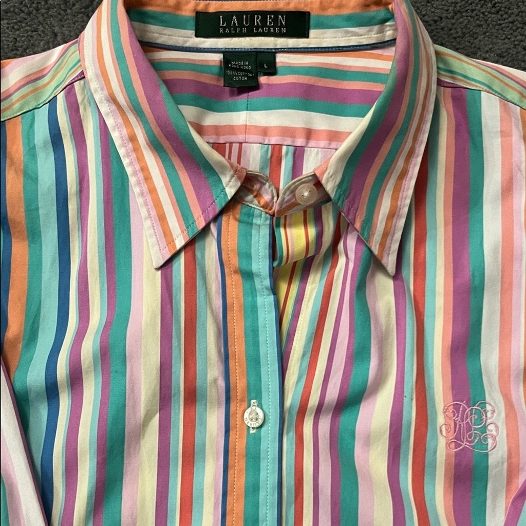 как выглядит Lauren Ralph Lauren Multicolor Striped Oxford Button Down Collar Shirt L Y2K EUC фото