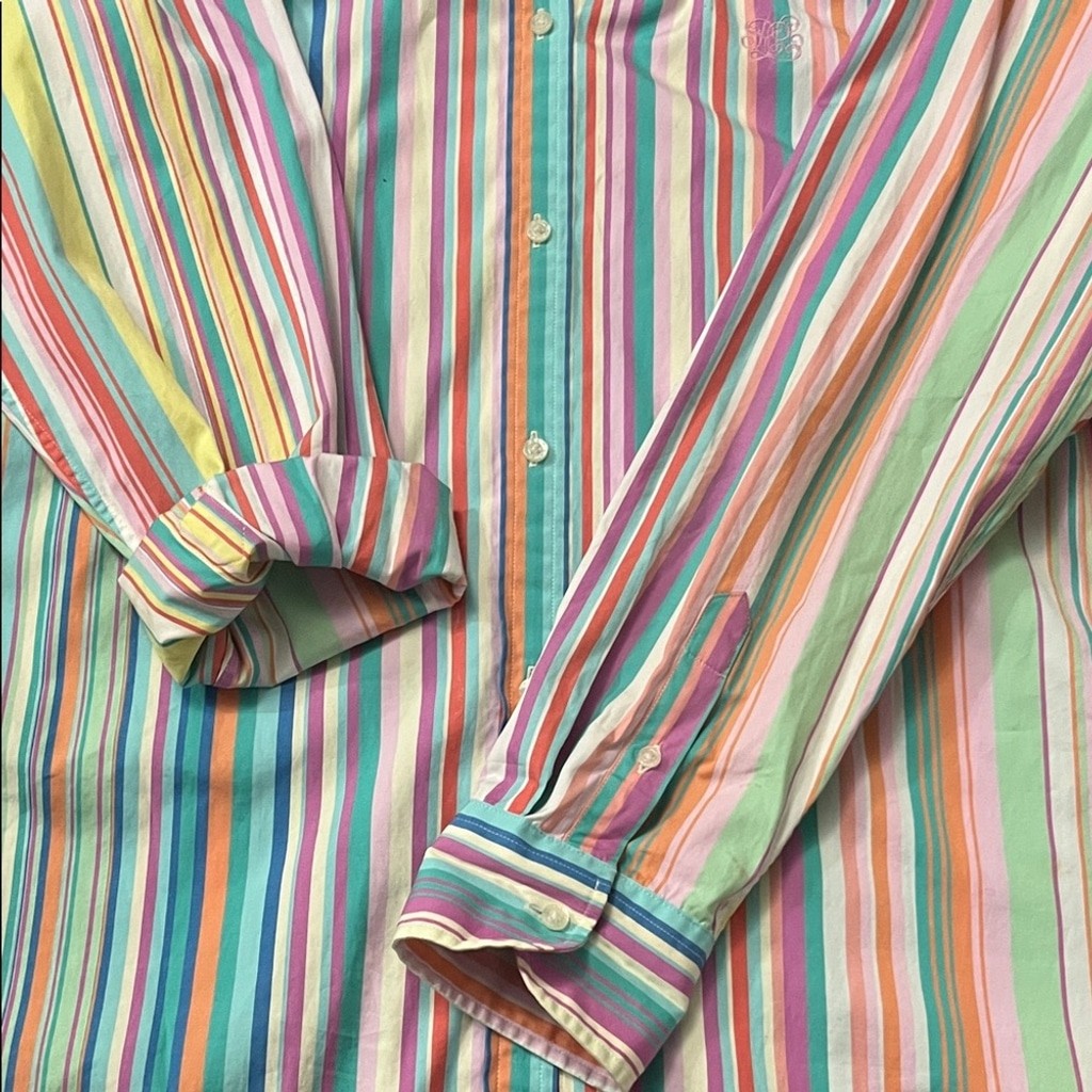 Lauren Ralph Lauren Multicolor Striped Oxford Button Down Collar Shirt L Y2K EUC