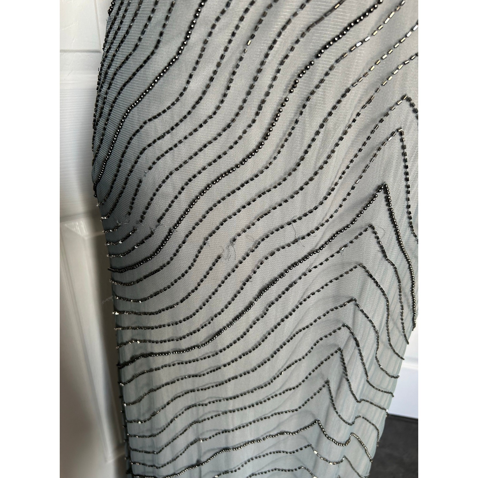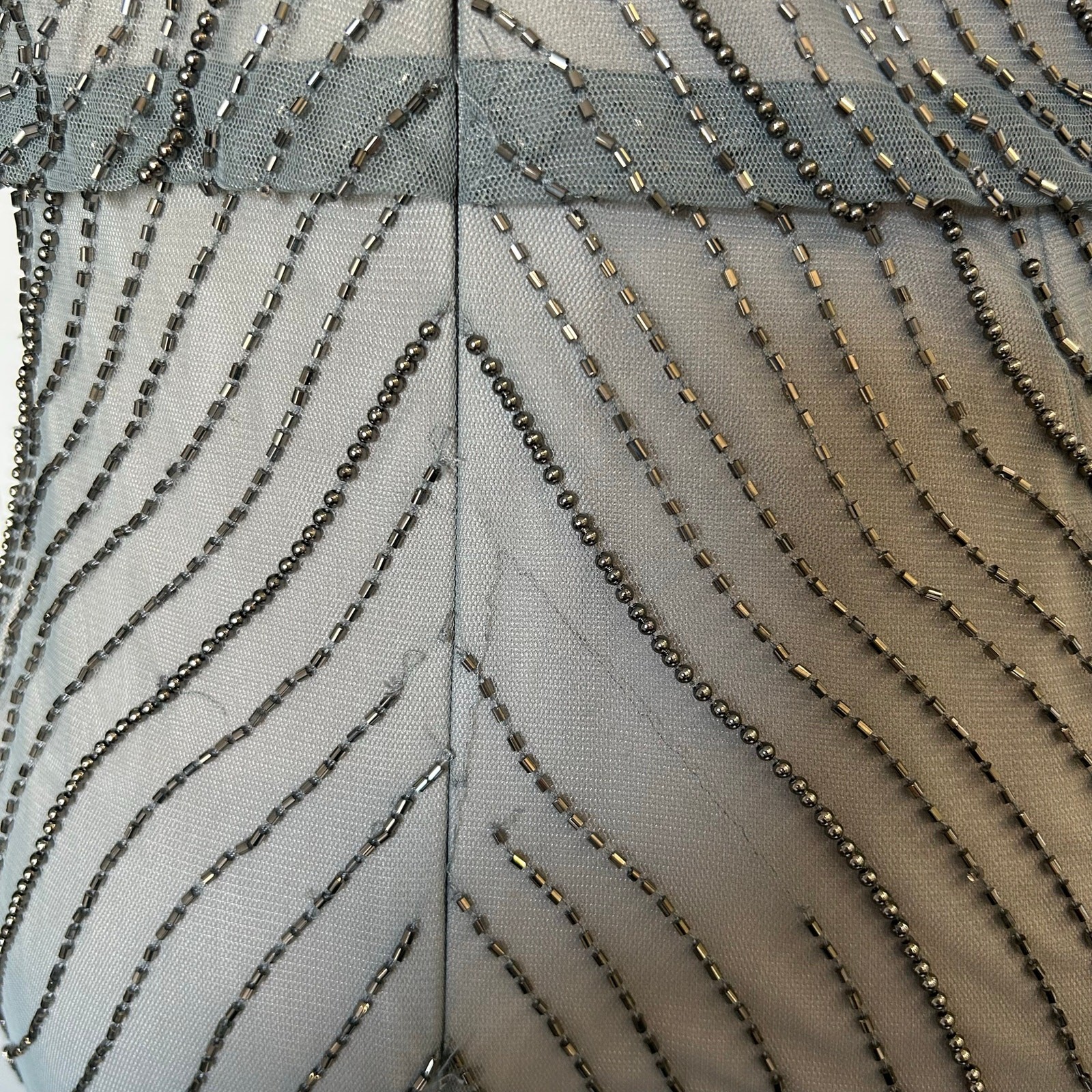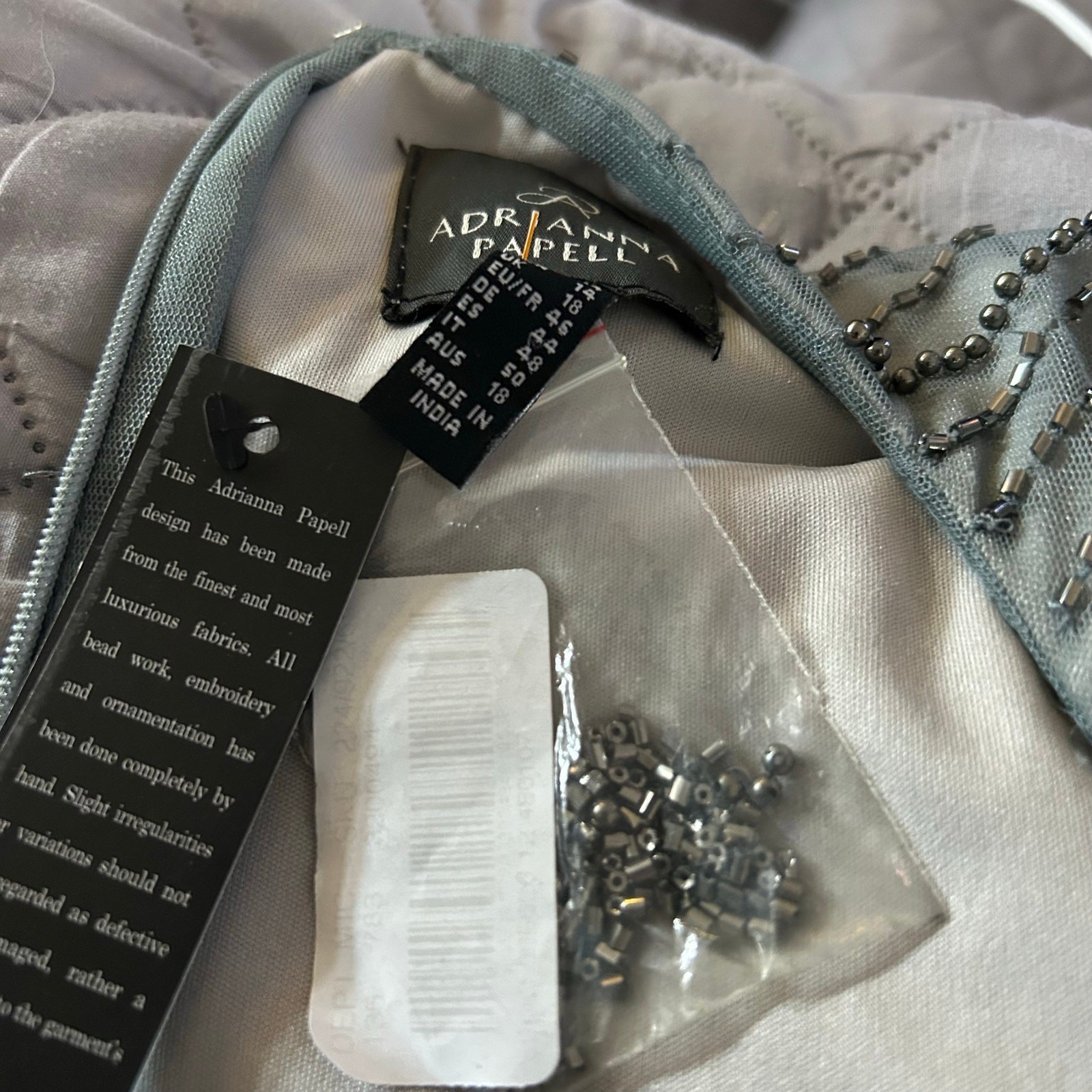 как выглядит Adrianna Papell Silver Blue Beaded Mesh Formal Gown Size 12 фото