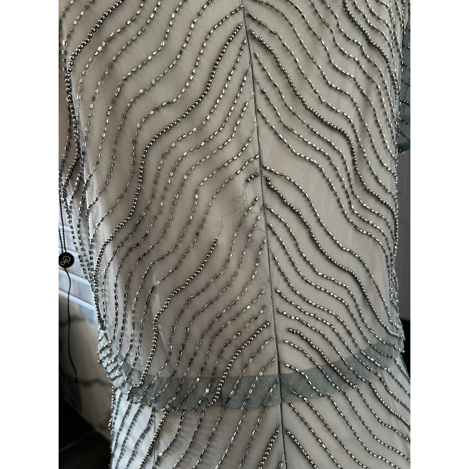 Adrianna Papell Silver Blue Beaded Mesh Formal Gown Size 12