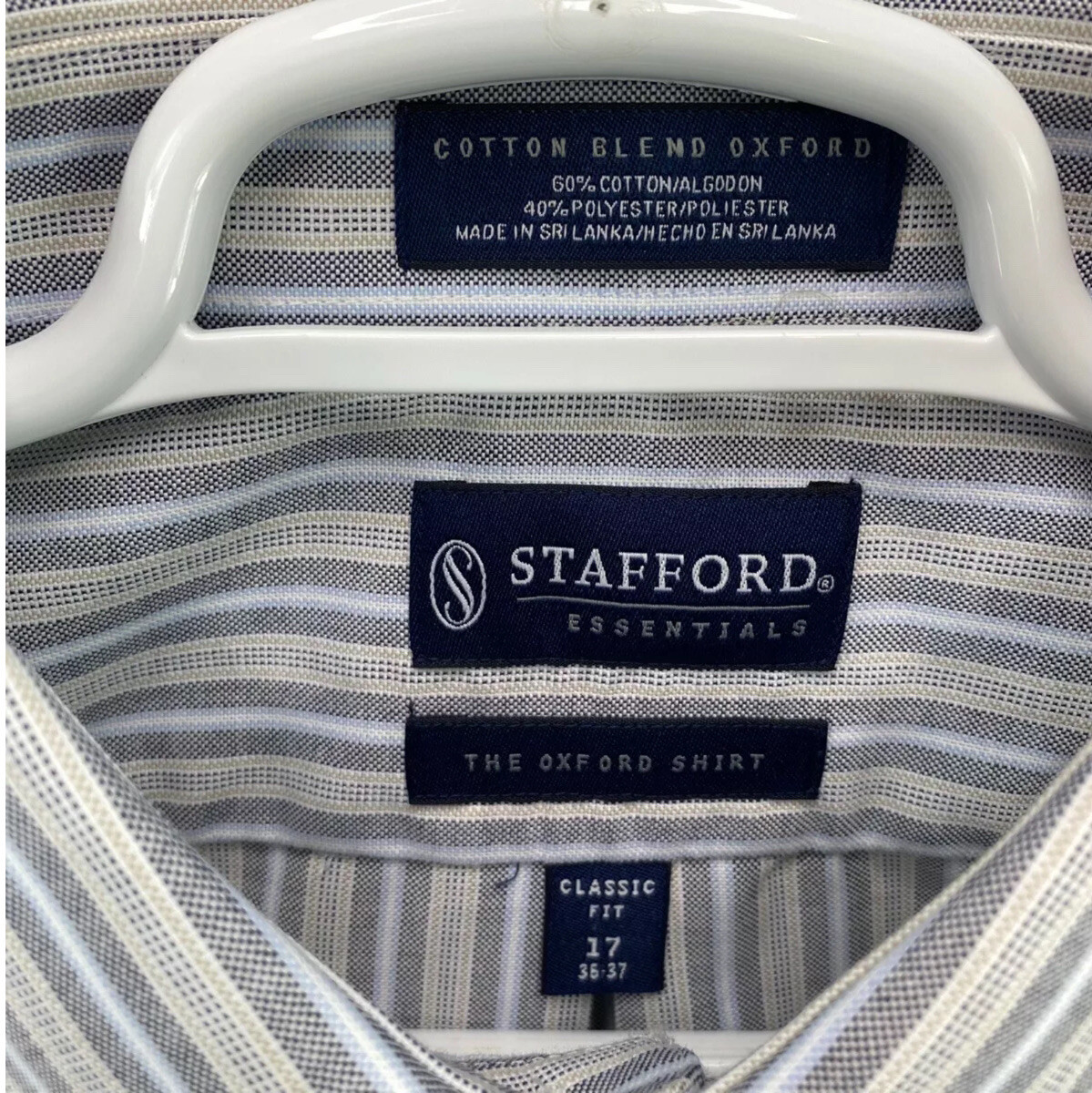 Stafford Men s Button Down LS Classic Fit Shirt Size 17 Multicolor Striped euc