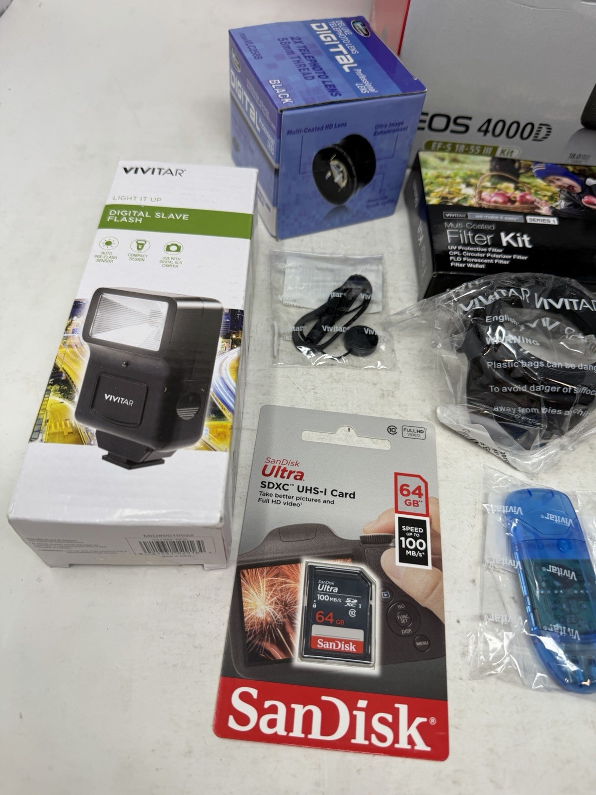 как выглядит Canon EOS 4000D / Rebel T100 With 18-55mm III Lens 64GB Bundle фото