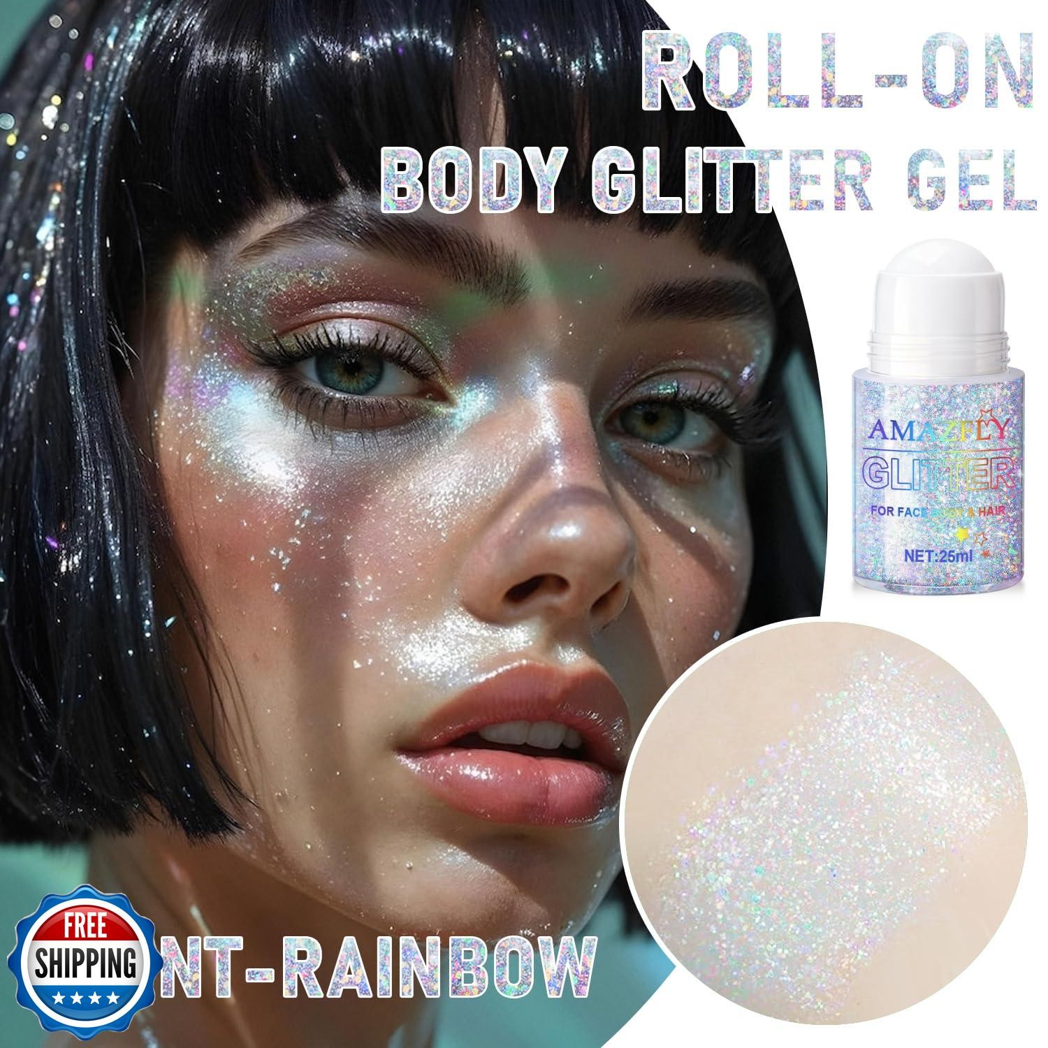 Roll-on Holographic Body Glitter Gel for Face and Hair, Chameleon