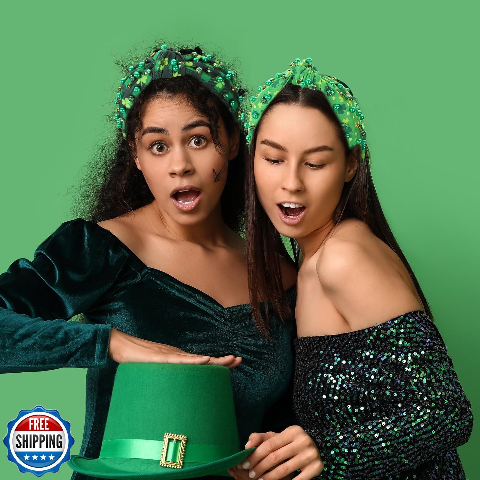2 Pack St. Patrick's Day Headband for Women Clover Print Pearl Rh
