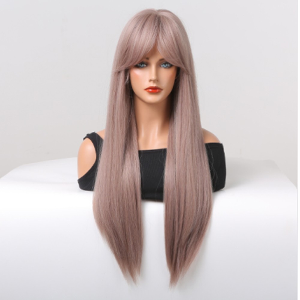 Long Straight Full Ash Purple Costume Synthetic Natural Cosplay Party Women Wigs