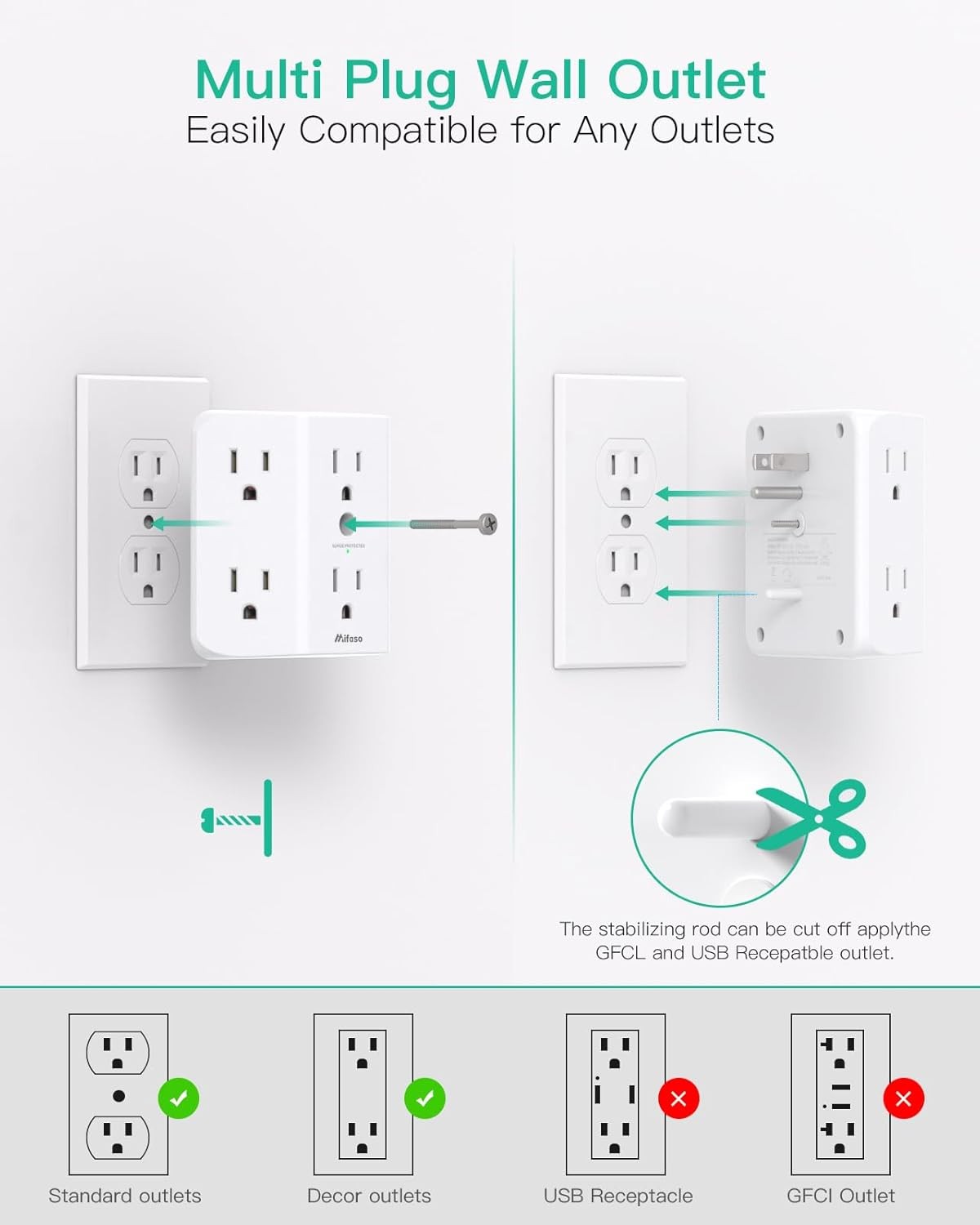 2 Pack Surge Protector Outlet, Outlet Splitter, Multi Plug Wall White