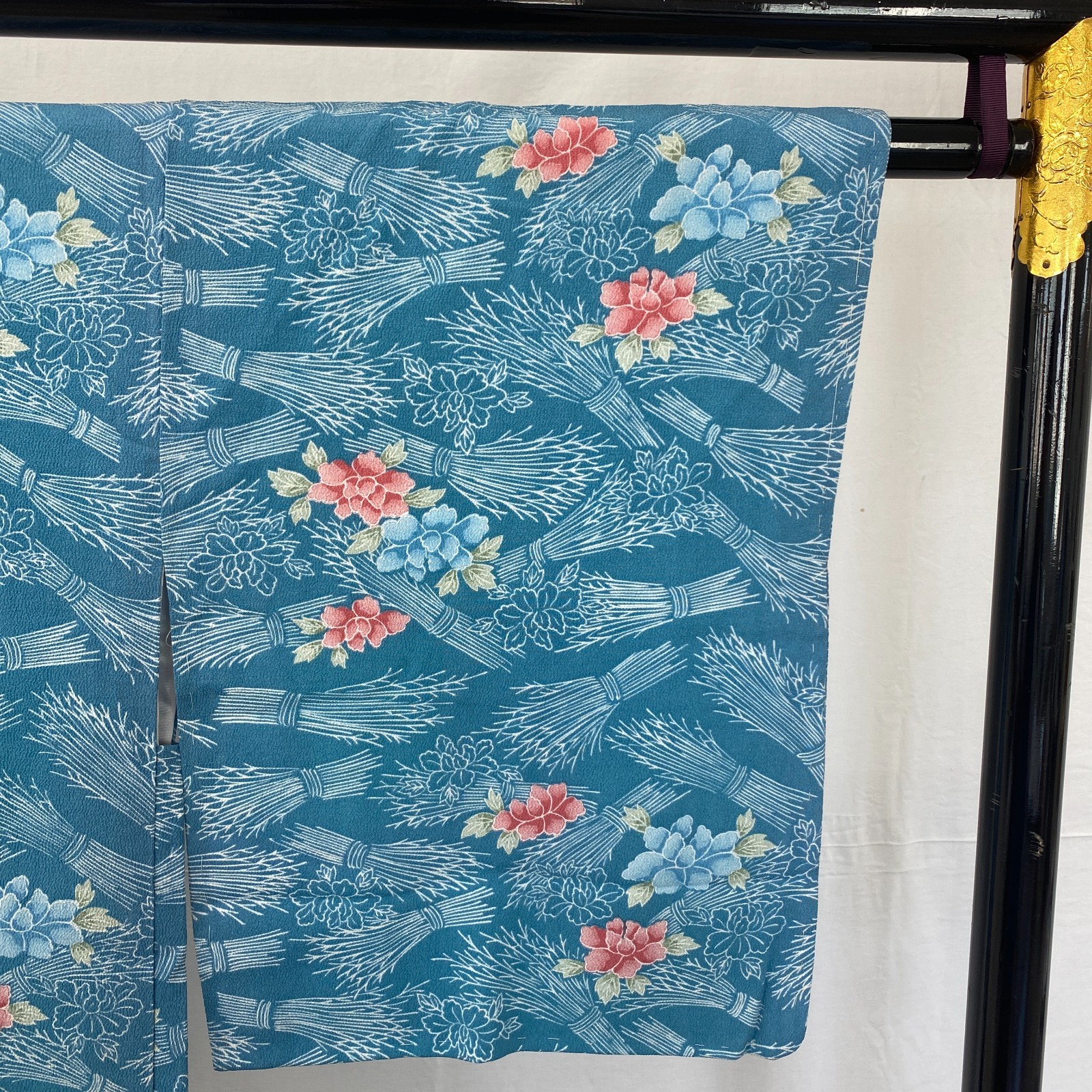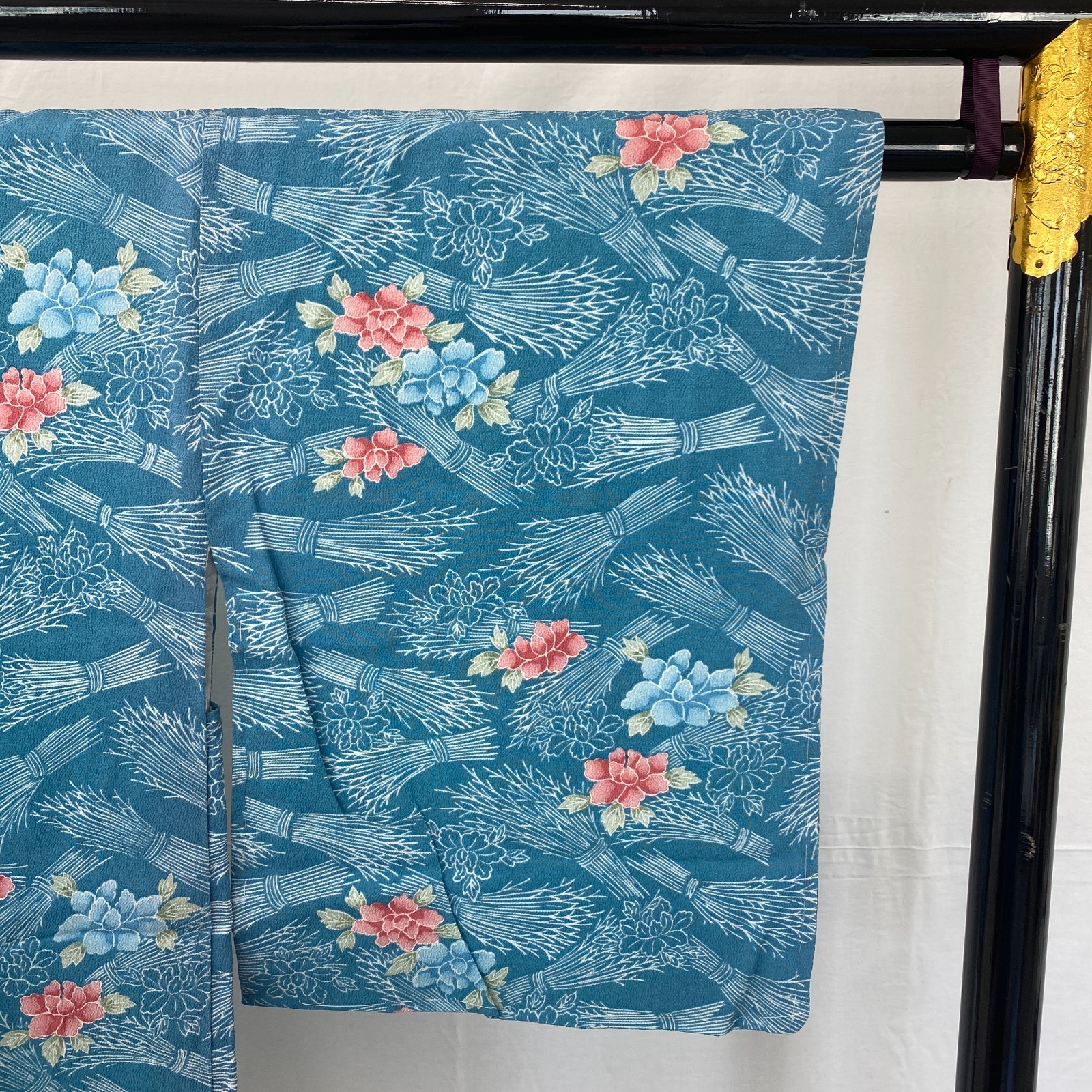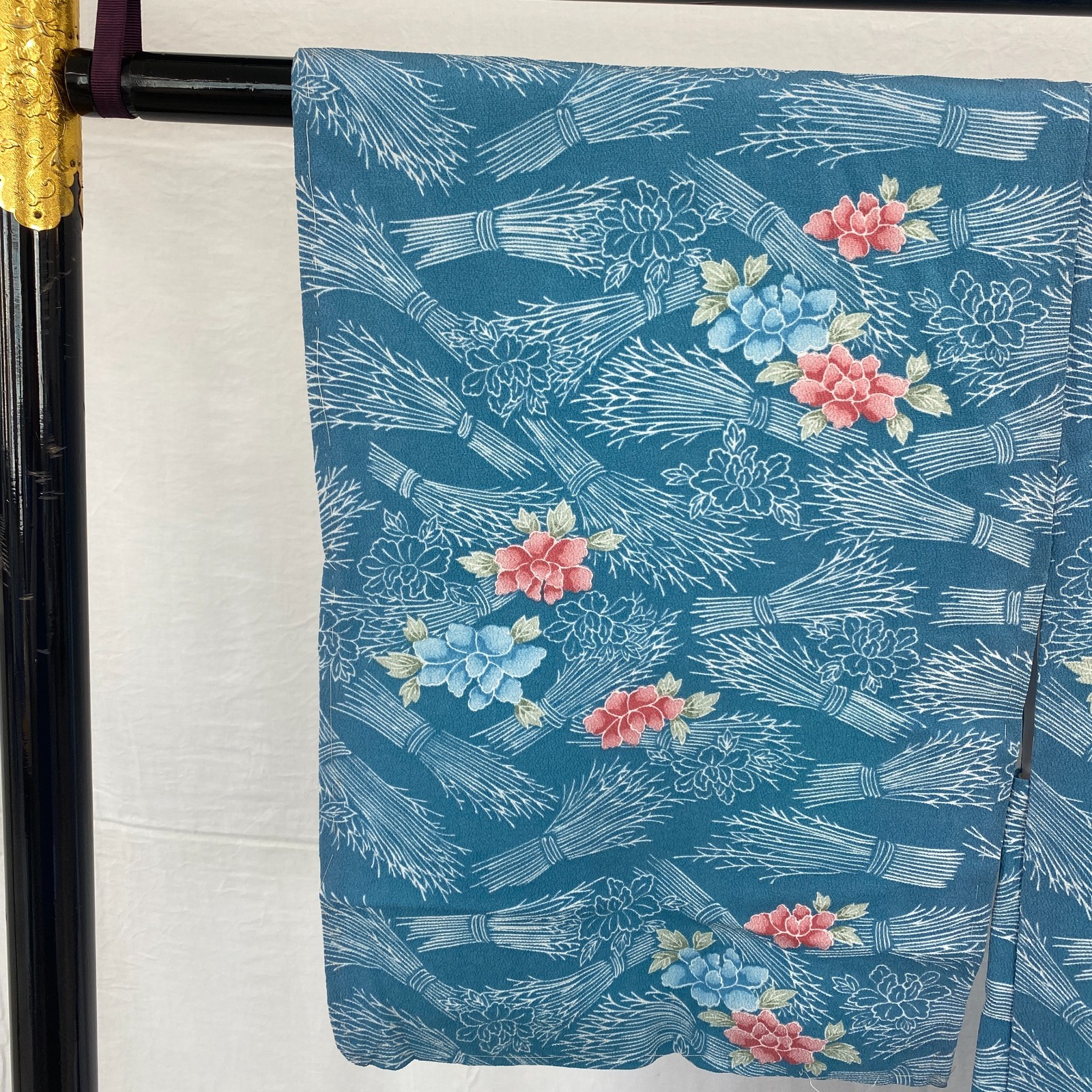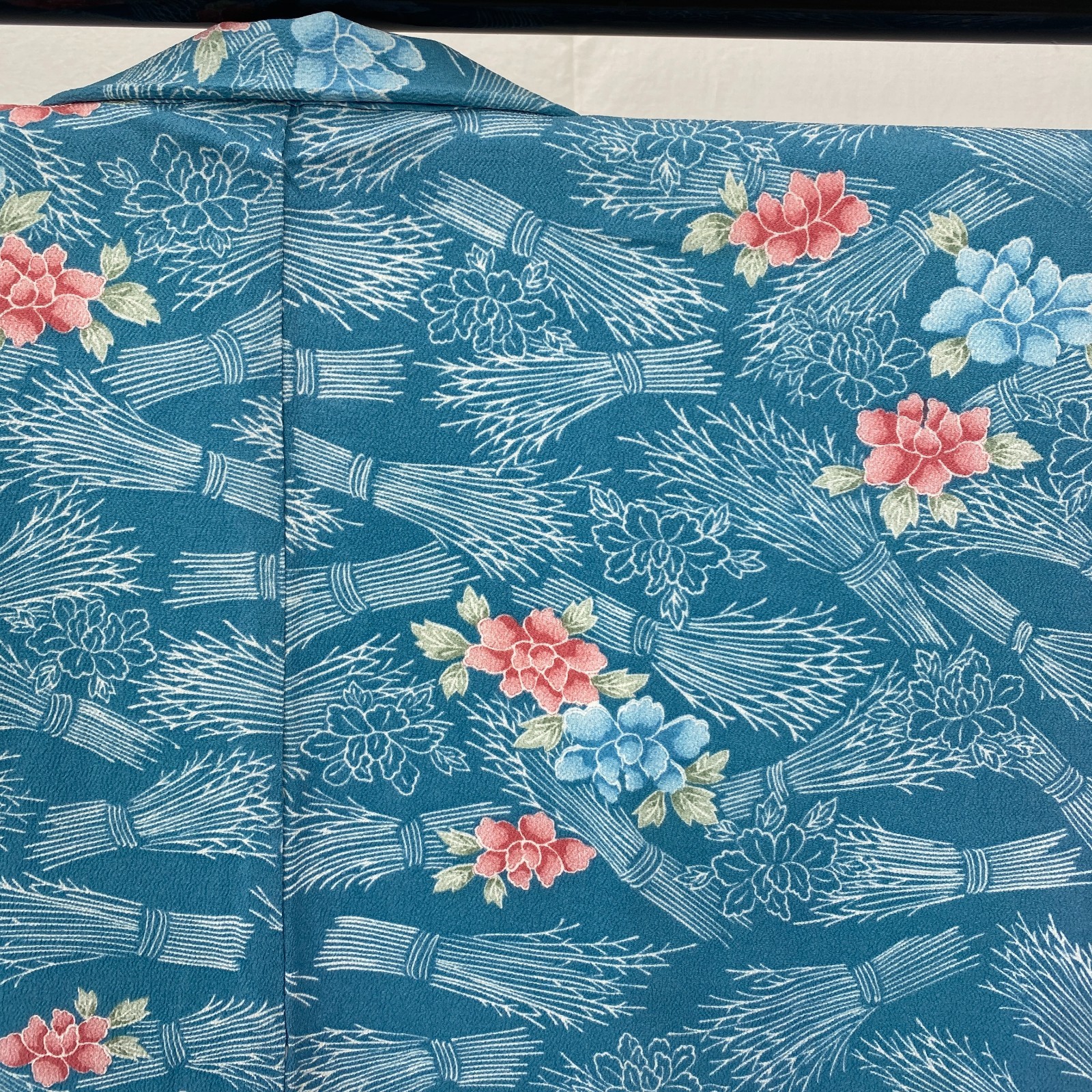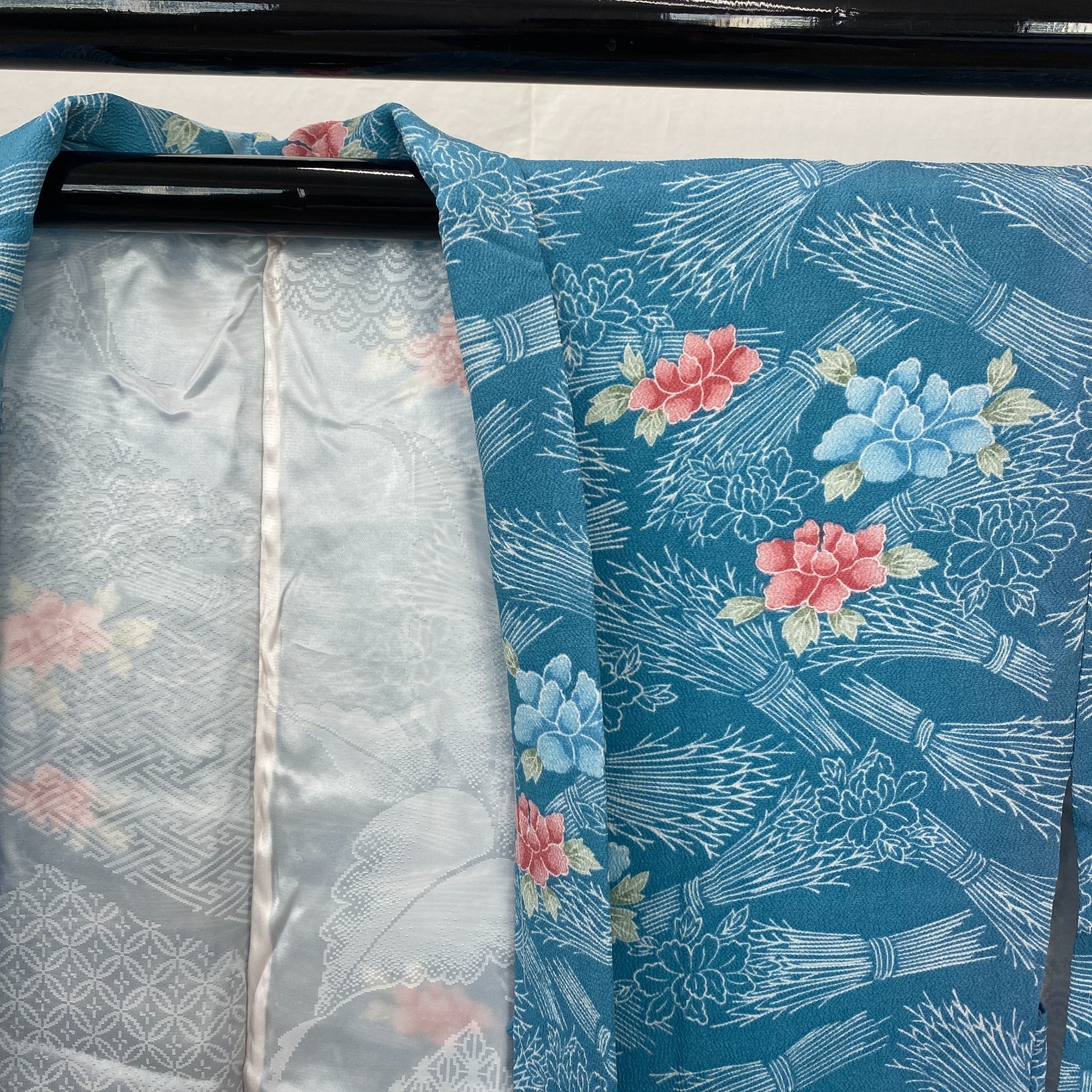 как выглядит Japanese Vintage Kimono Haori Jacket Polyester Blue Traditional Authentic 33in фото