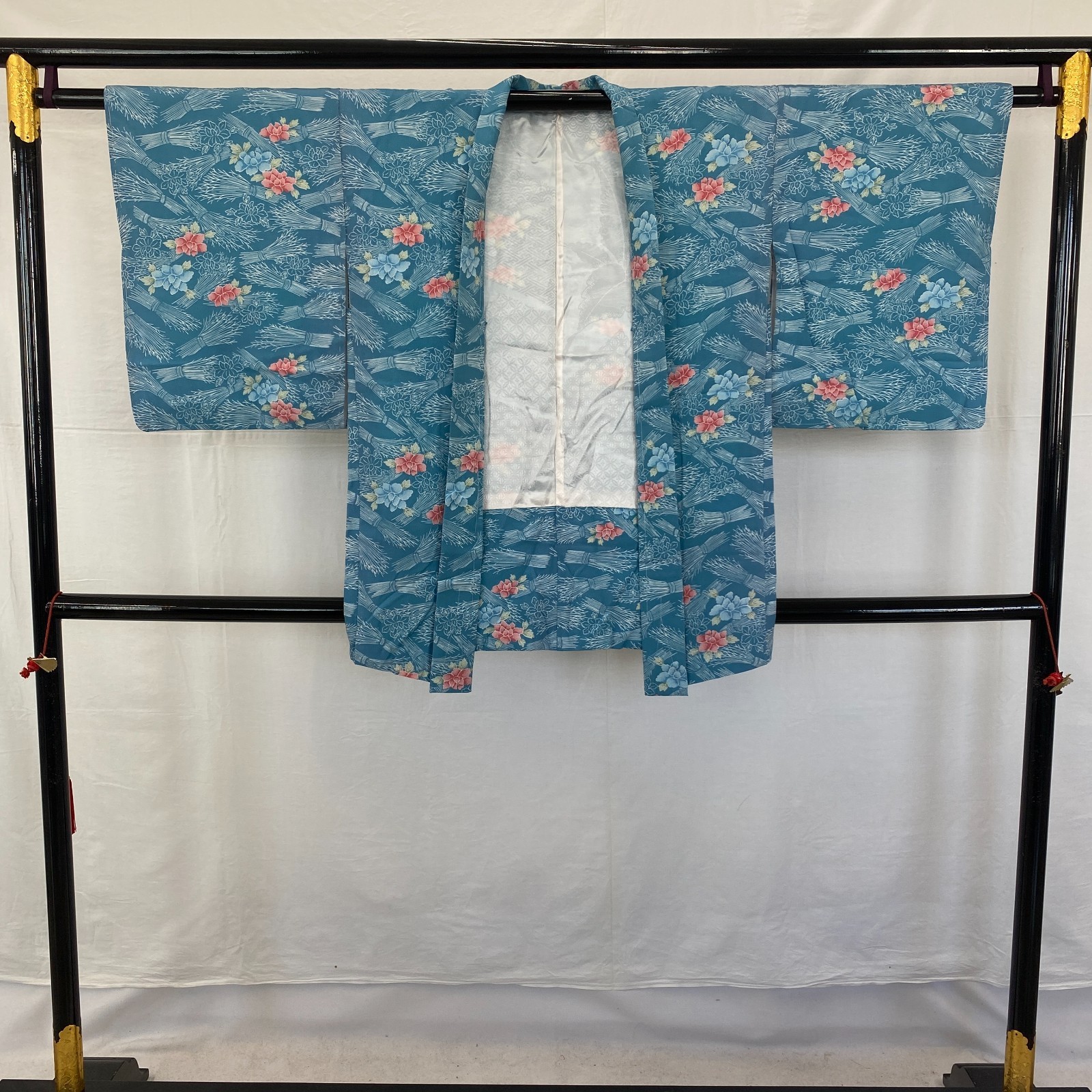 Japanese Vintage Kimono Haori Jacket Polyester Blue Traditional Authentic 33in