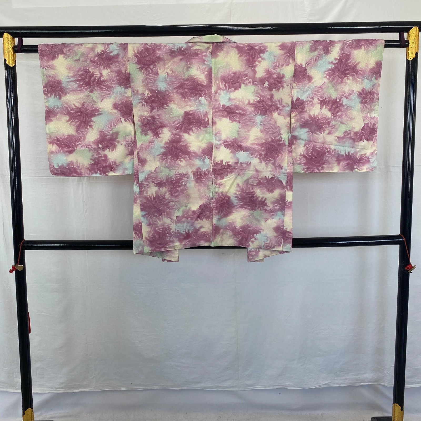 как выглядит Japanese Vintage Kimono Haori Jacket Polyester Purple Traditional Authentic 31in фото