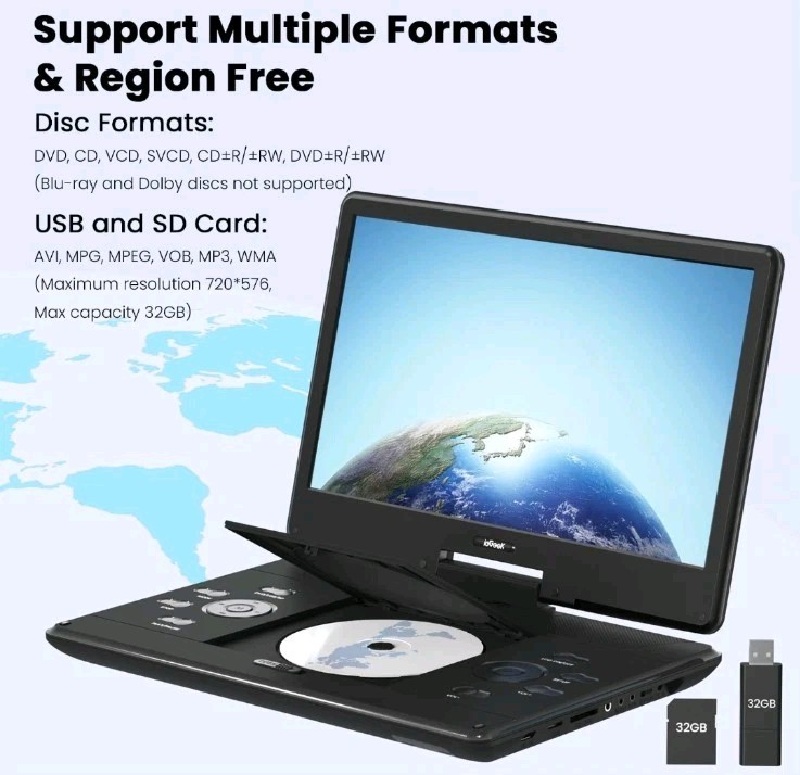 NEW ieGeek 15.9 Portable DVD Player Large HD Screen For Travel and Ideal Gift