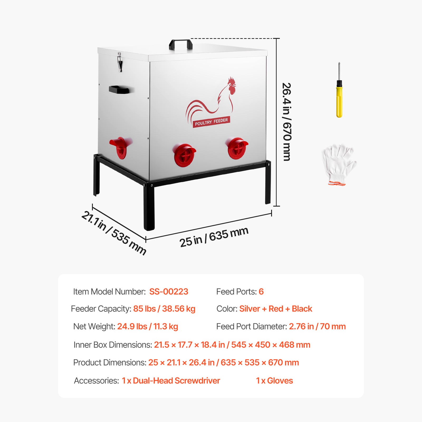 Feeder Capacity: 85 lbs/38.56 kg
