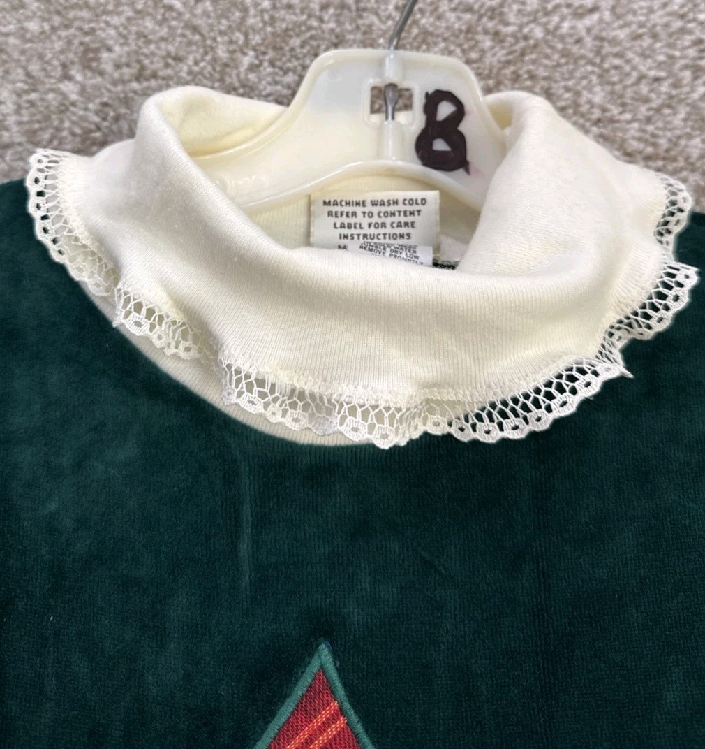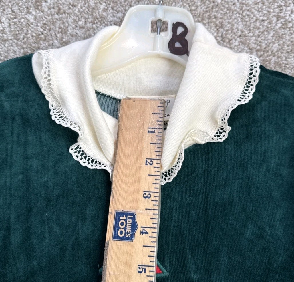 как выглядит Vtg Rebecca Raggs Original Green Velour Long Sleeve Girl