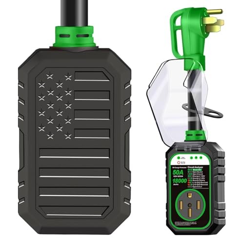 18000J RV Surge Protector 50 Amp Flag Design - Upgraded Power 50AMP Bark Green