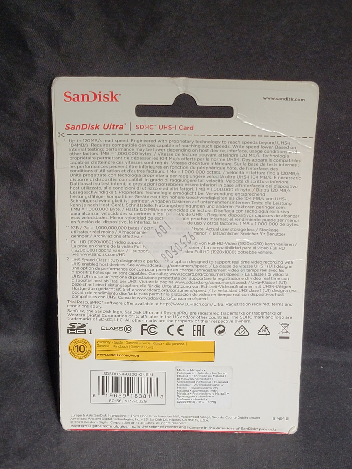 SanDisk Ultra 32GB Class 10 SDHC Memory Card - SDSDUNR-032G-GN6IN