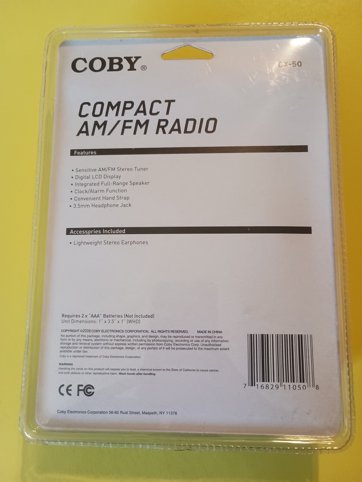Coby Model CX-50 Pocket AM/FM Radio with Headphones Sealed