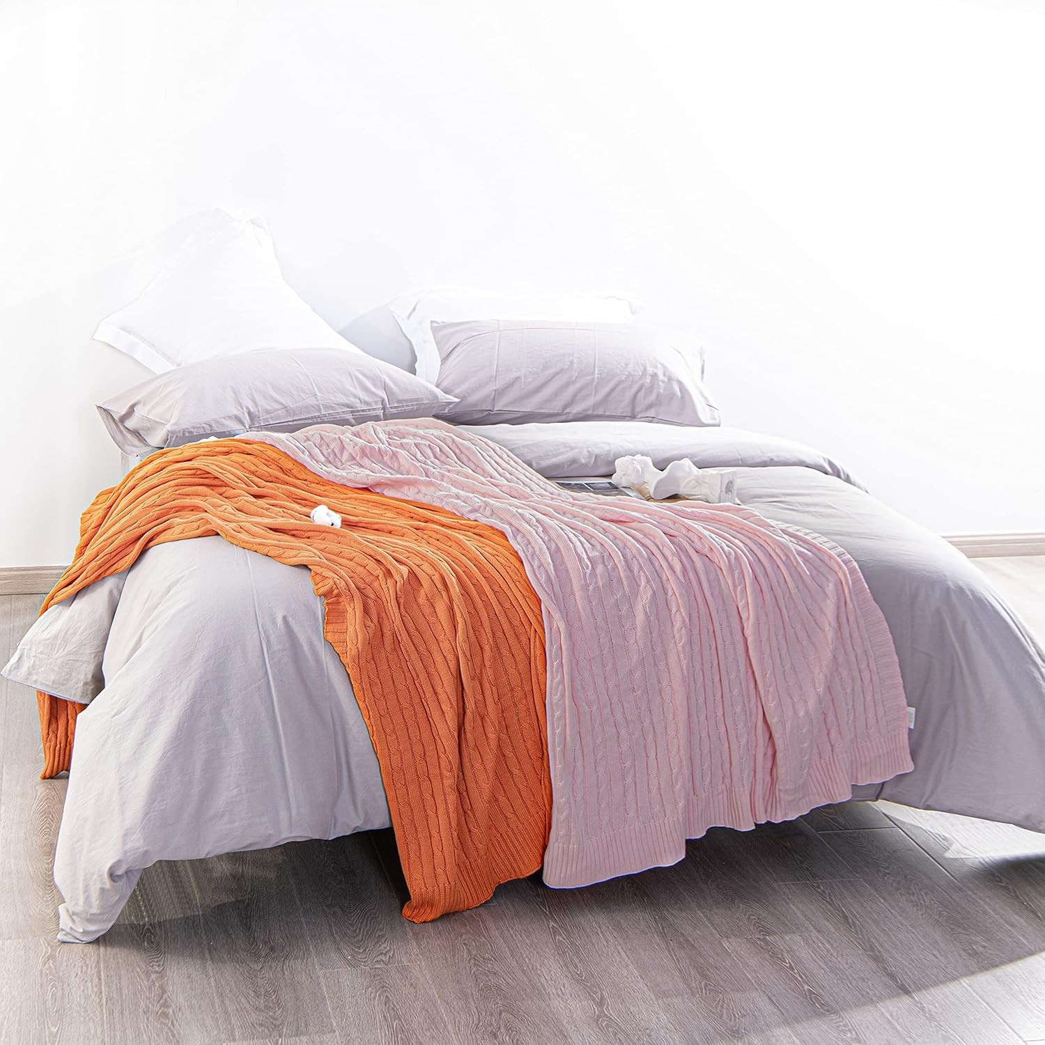 100 Pure Cotton Cable Knit Throw Blanket, Super Soft Warm 51x67 Knitted Thro...