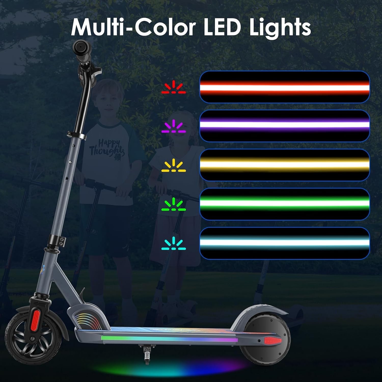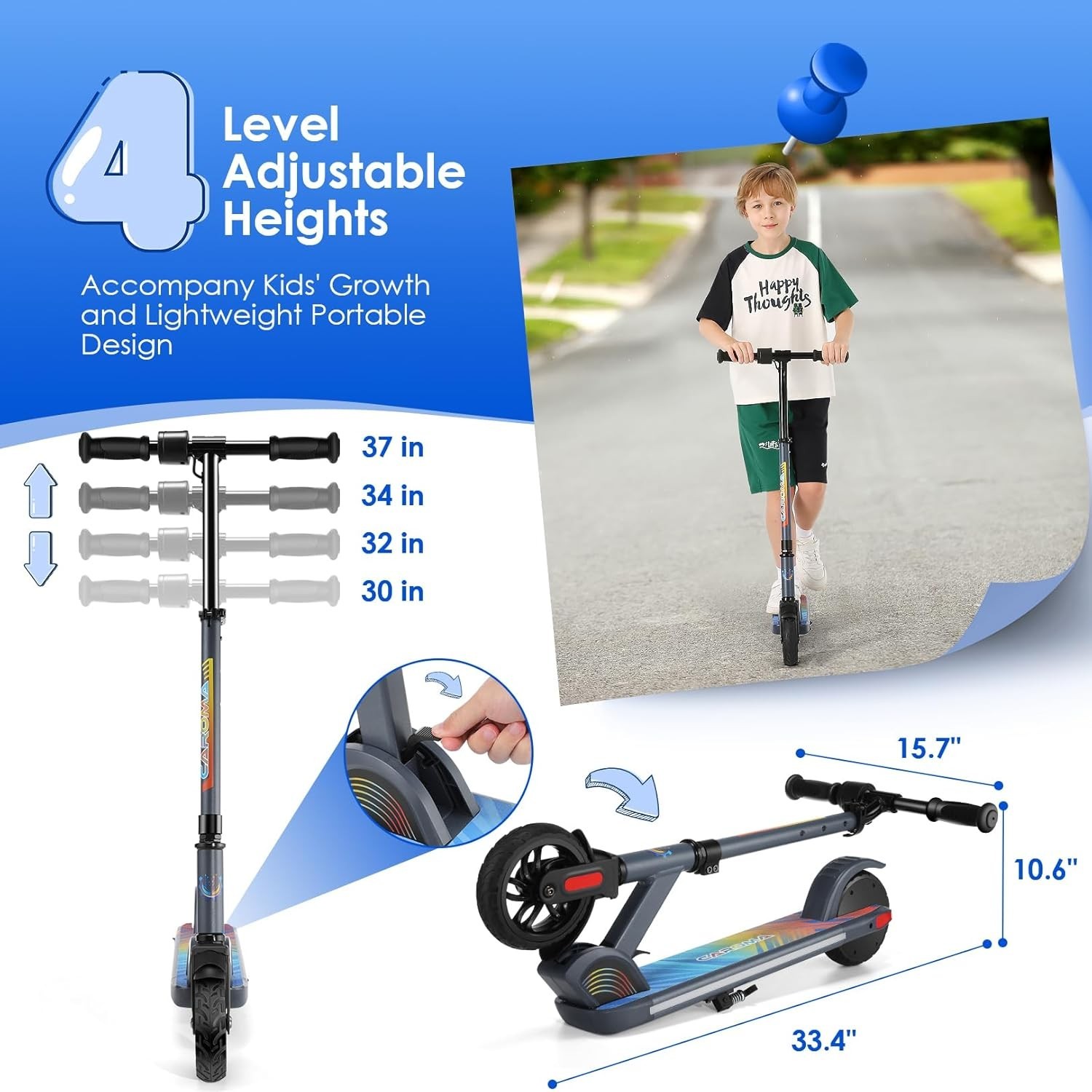 Kids Electric Scooter 6-14 Years Adjustable Folding E-Scooter with LED
