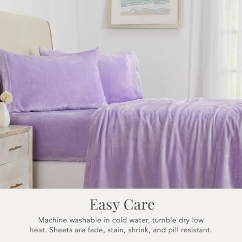 Ultra Soft Micro Fleece Sheets Set with Extra Deep Pockets Twin Pastel Lilac