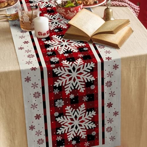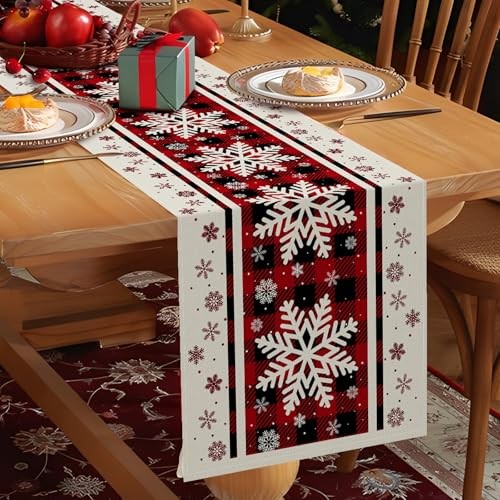 72 x 13 Inch Christmas Table Runner Buffalo Plaid Buffalo Plaid Snowflakes