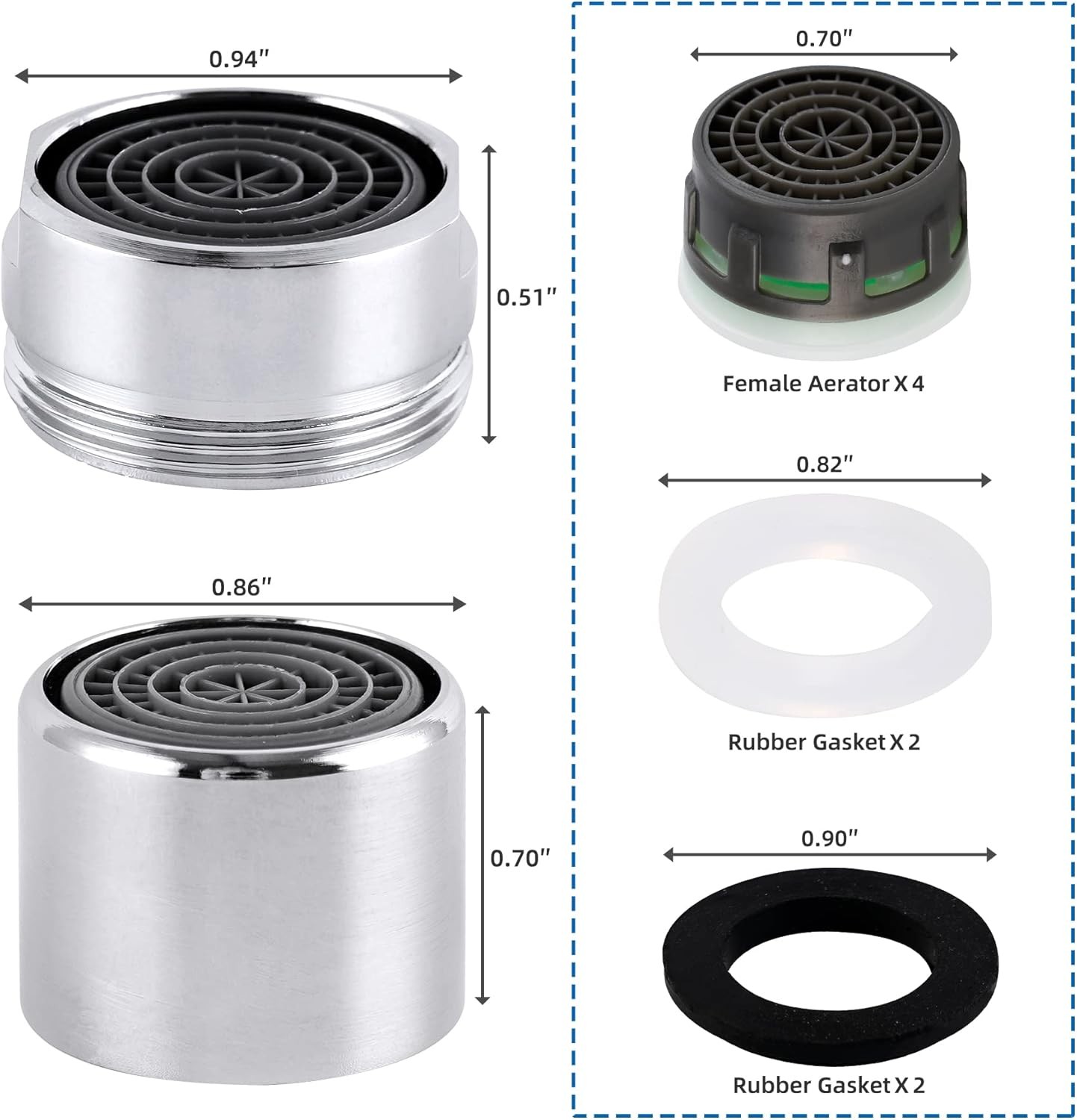 Hibbent 4 Pack Faucet Aerator, Solid Brass Kitchen Sink Aerator Chrome