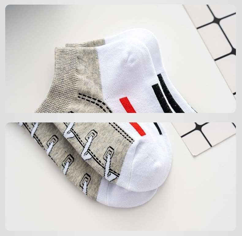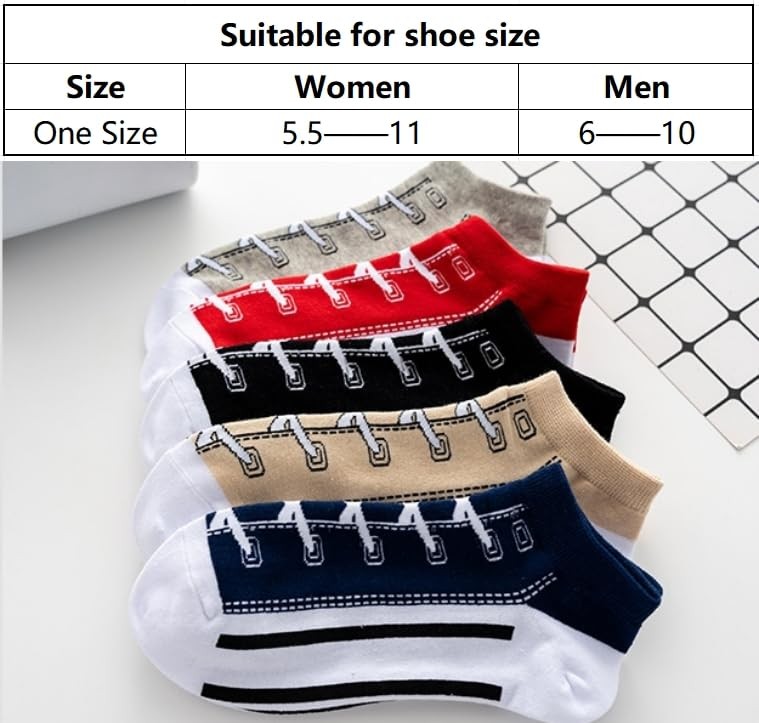 Pack of 5 Boys Funny Shoelaces Ankle Socks One Size Red,blue,apricot,black,gray