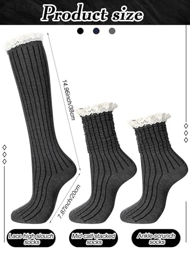 3 Pairs Cotton Knit Boot Socks Knee High Stockings Black,dark Gray,navy Blue