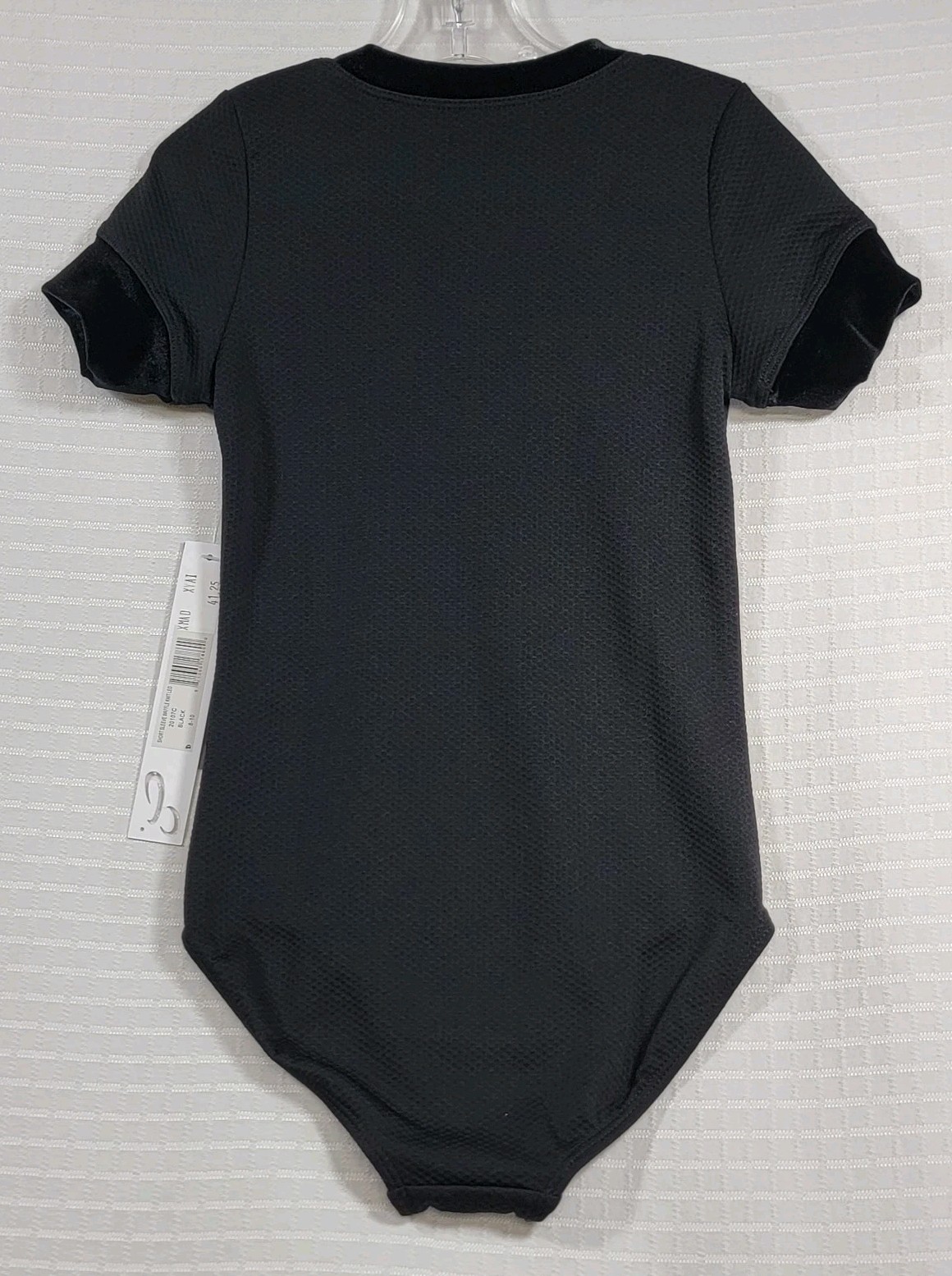 как выглядит Danz N Motion Black Child Short Sleeve Leotard Velvet Trim Textured Pattern фото